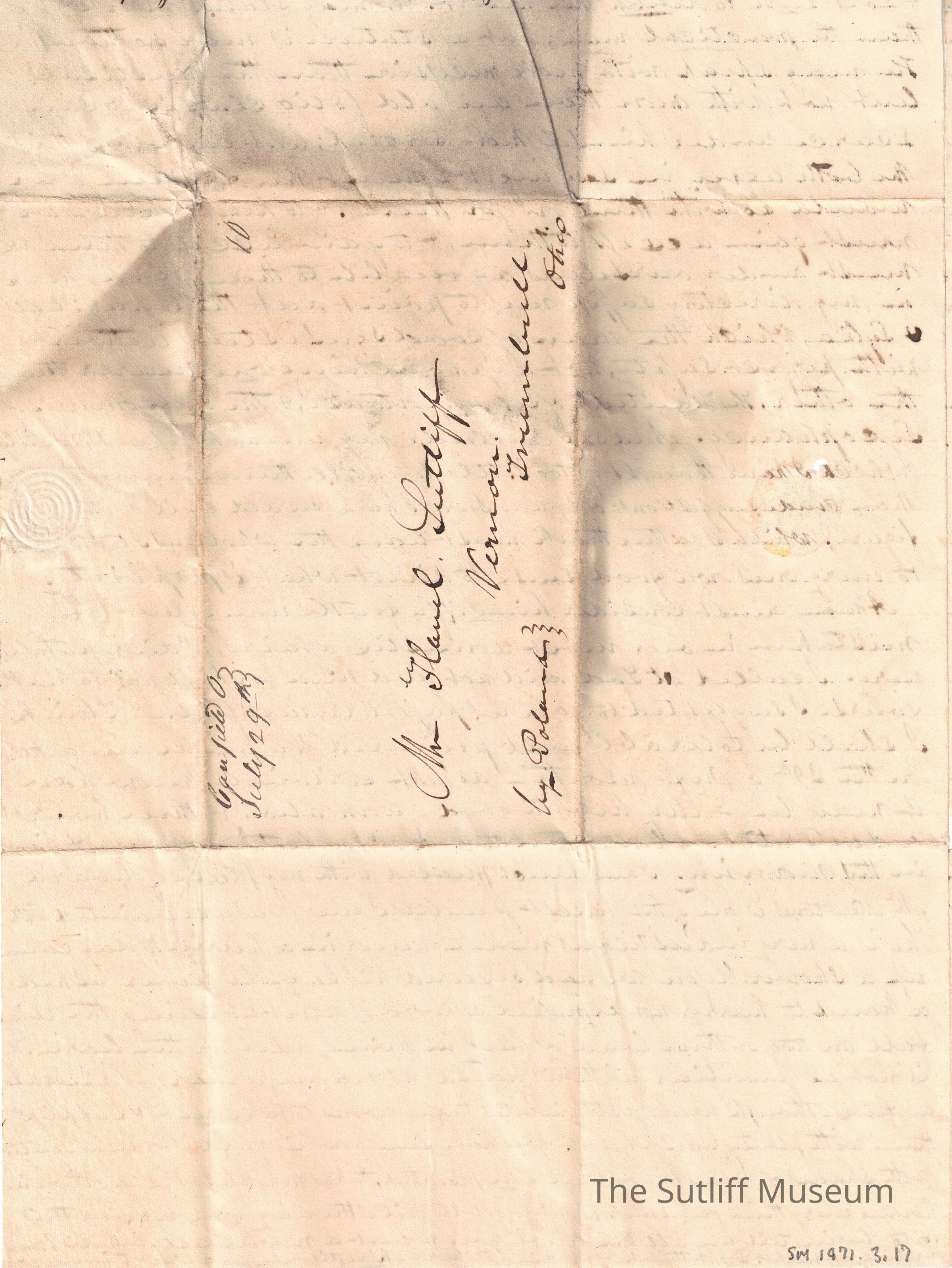 Milton Sutliff To Flavel Sutliff Jul 28, 1834Entry/Object ID