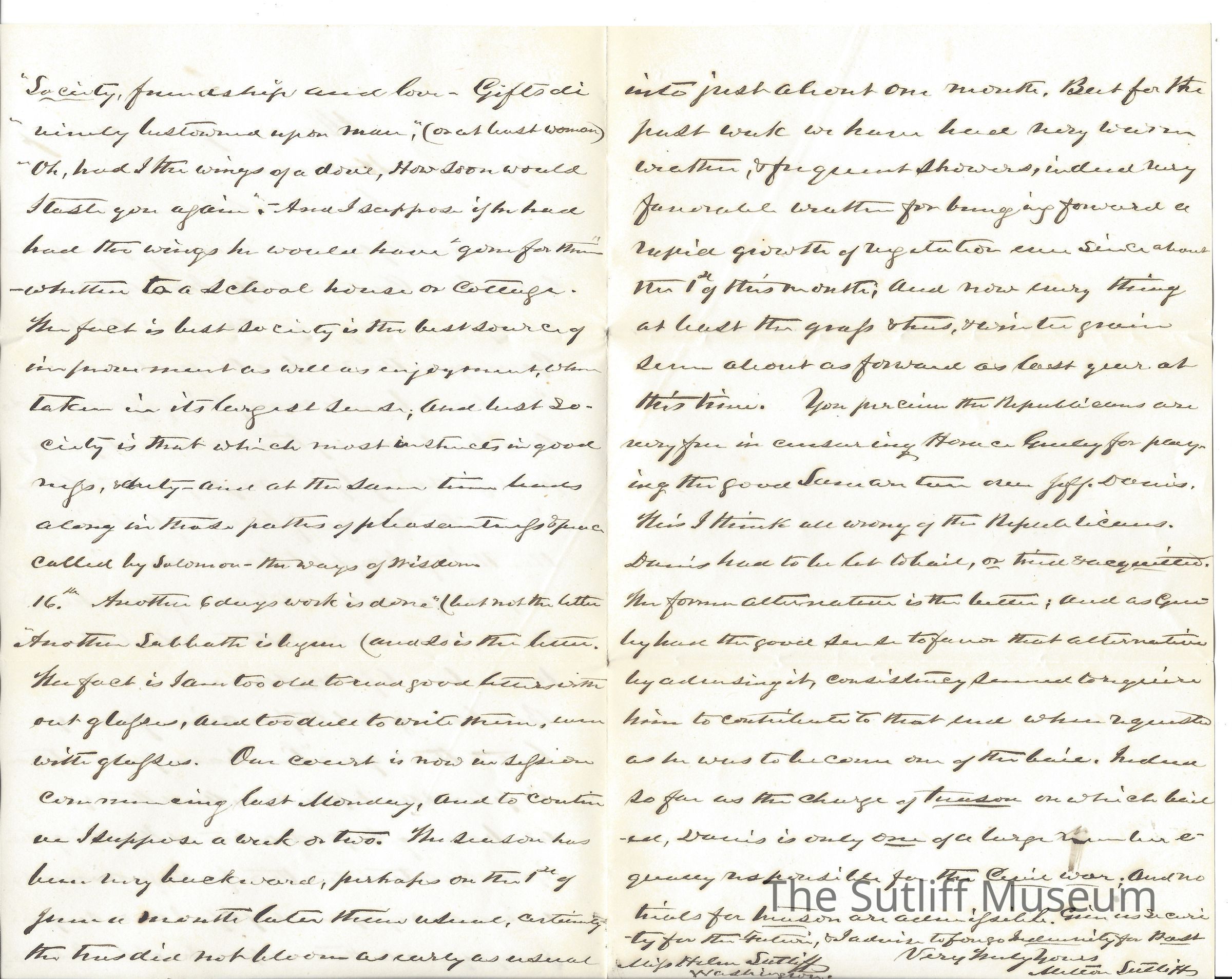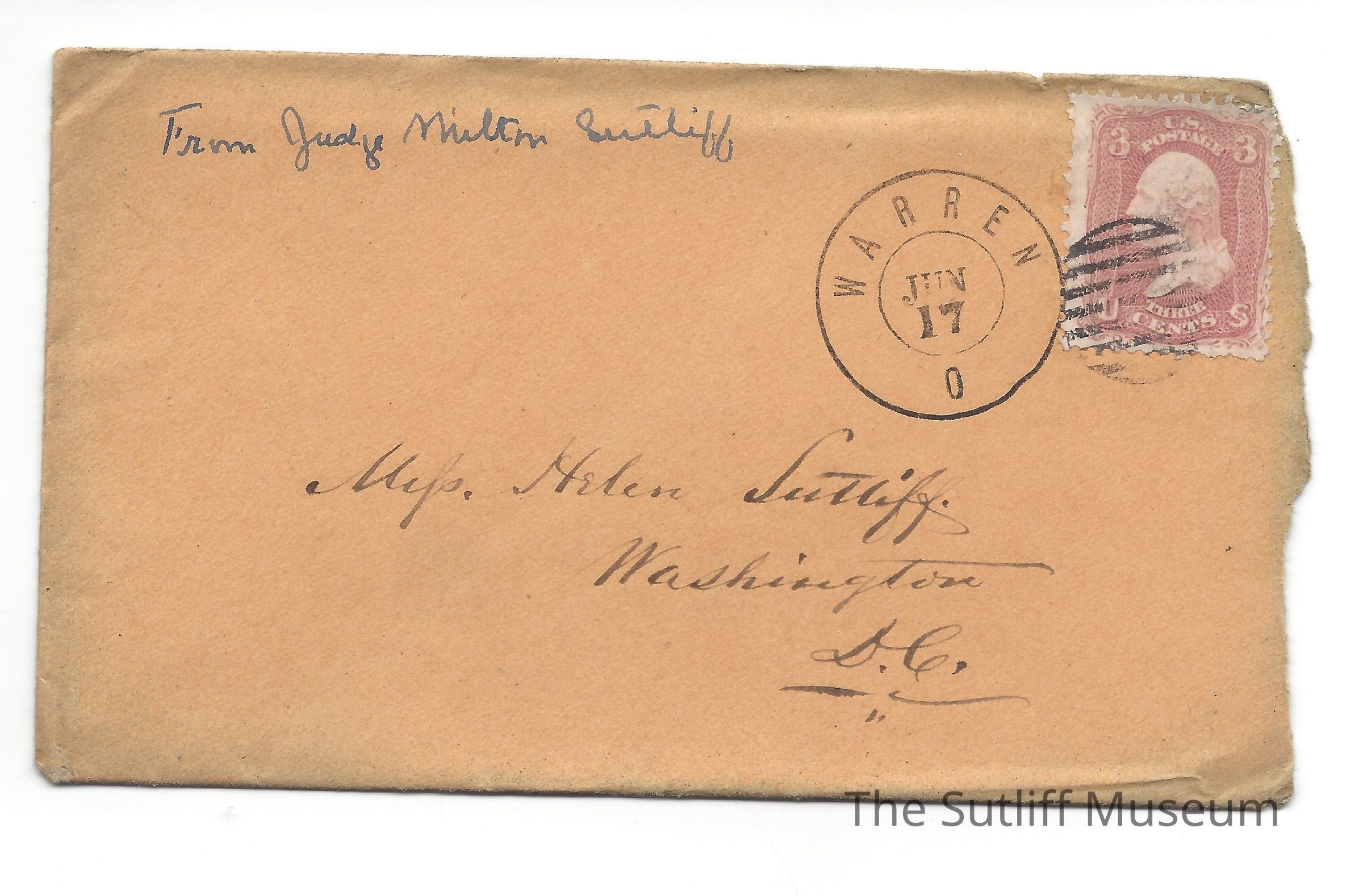 Letter from Milton Sutliff to Helen Sutliff in Washington, D.C.Collection
