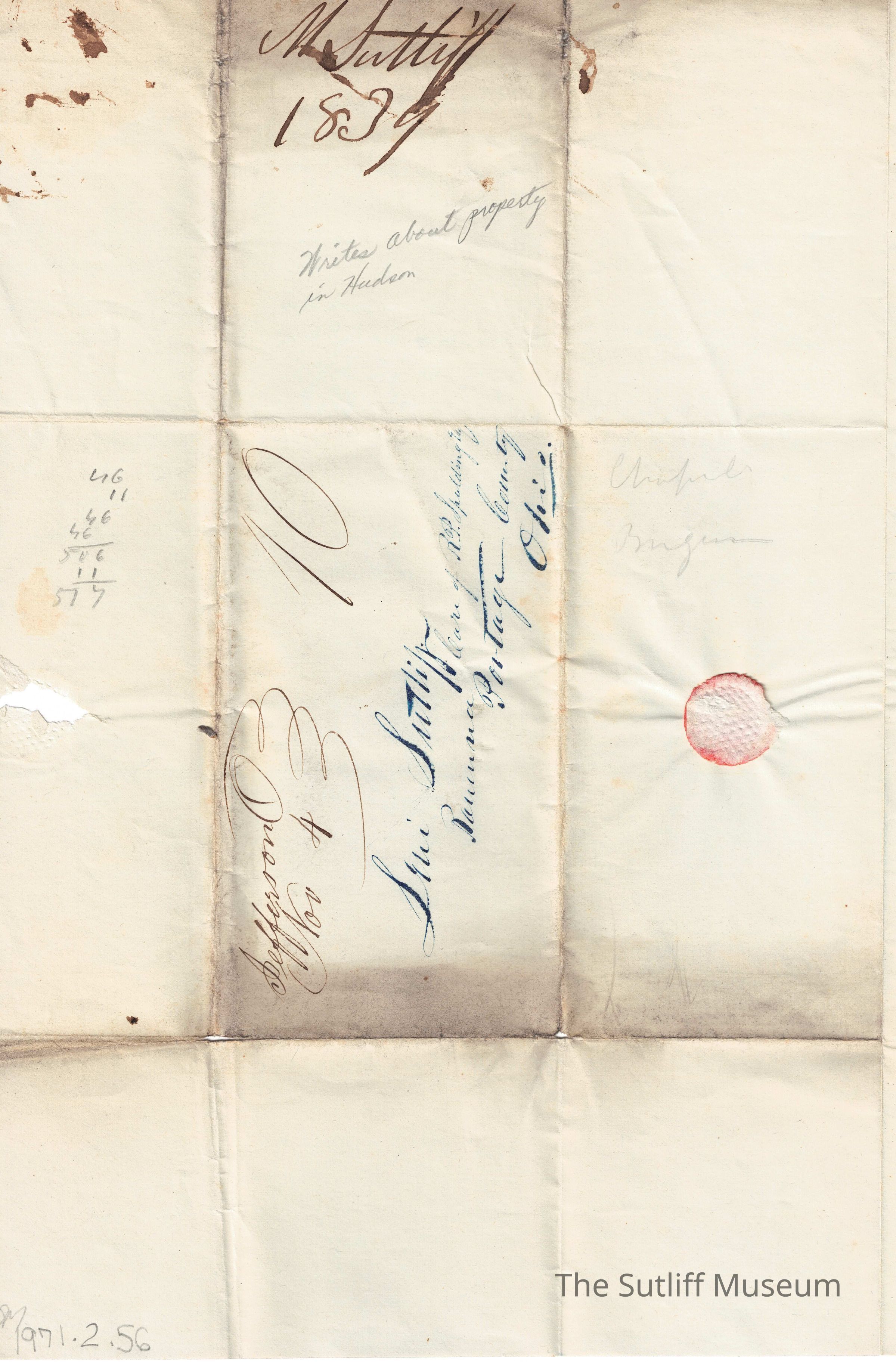 1830s, Business, Correspondence Between Sutliffs, Land, Money, LegalDescription