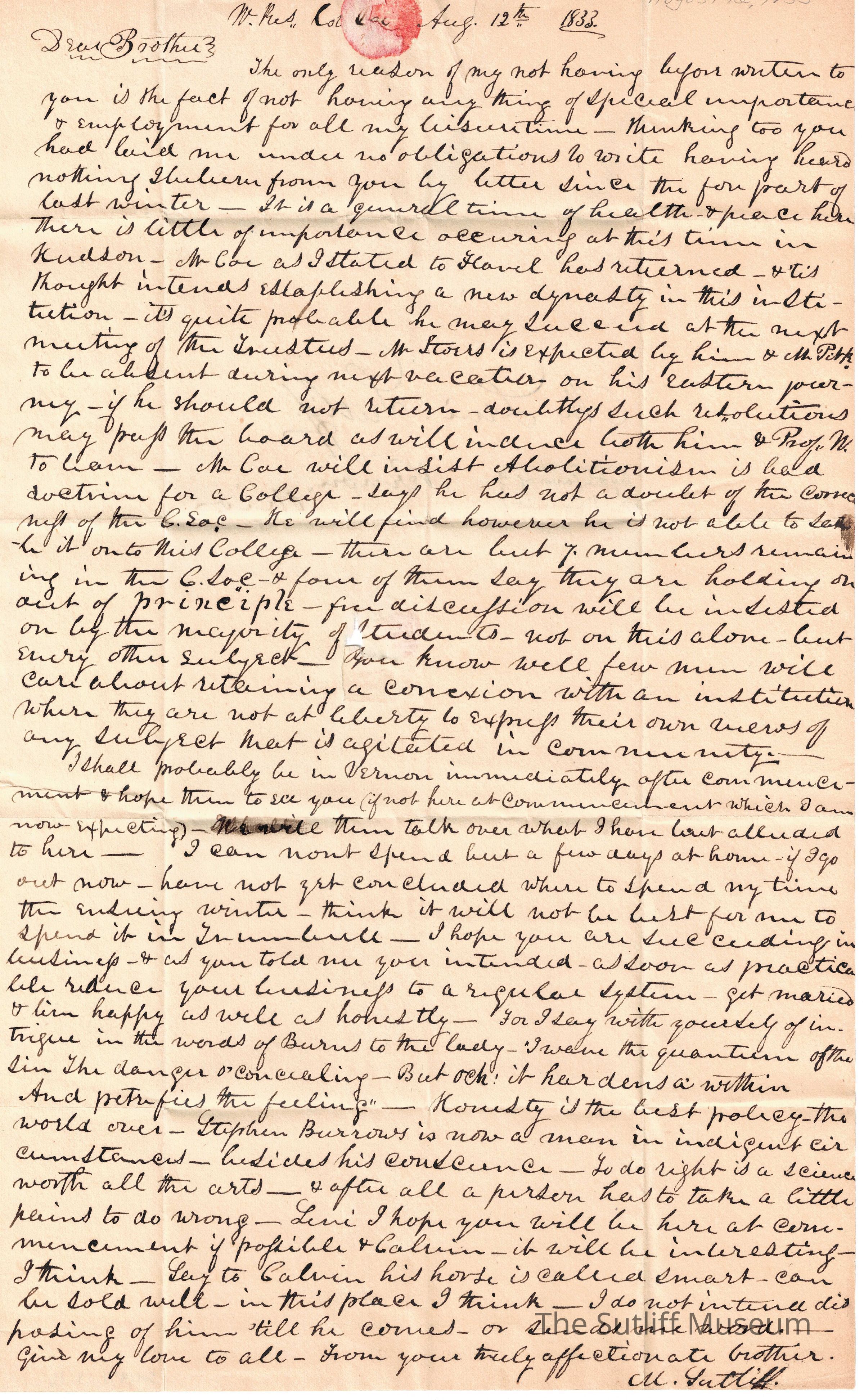 Milton Sutliff to Levi Sutliff Aug 12, 1833Entry/Object ID