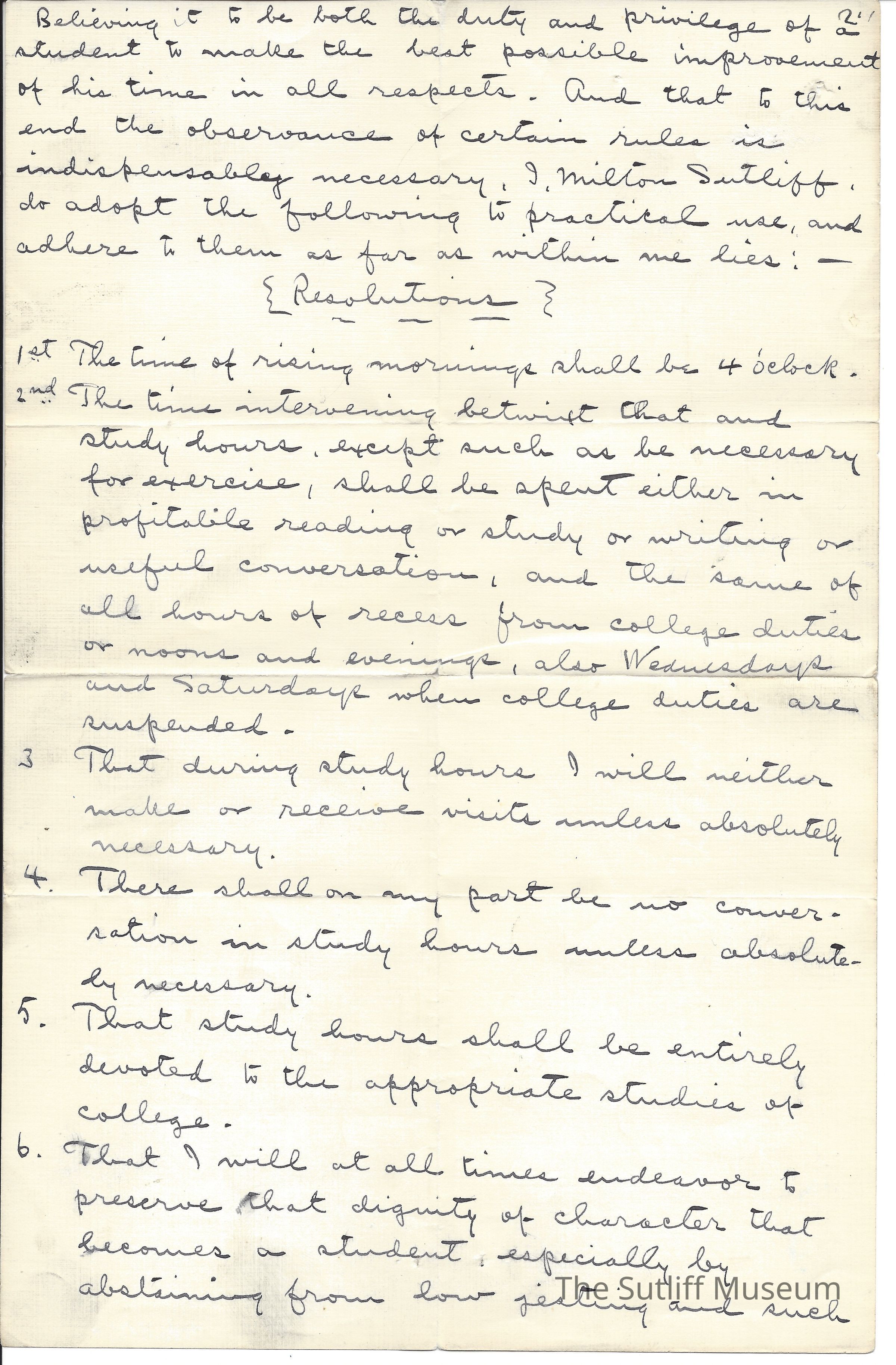 Milton Sutliff's Resolutions