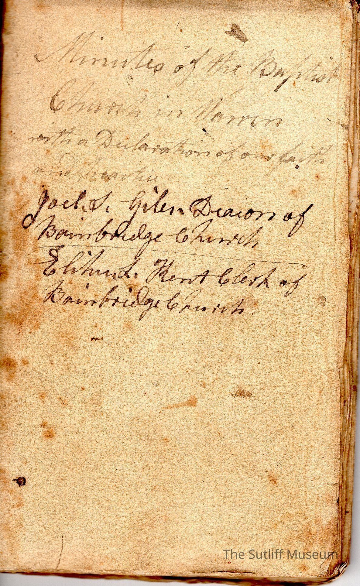 A booklet titled "Minutes of the Baptist Chuch in Warren." Written by Joel S. Giles.Archive Details