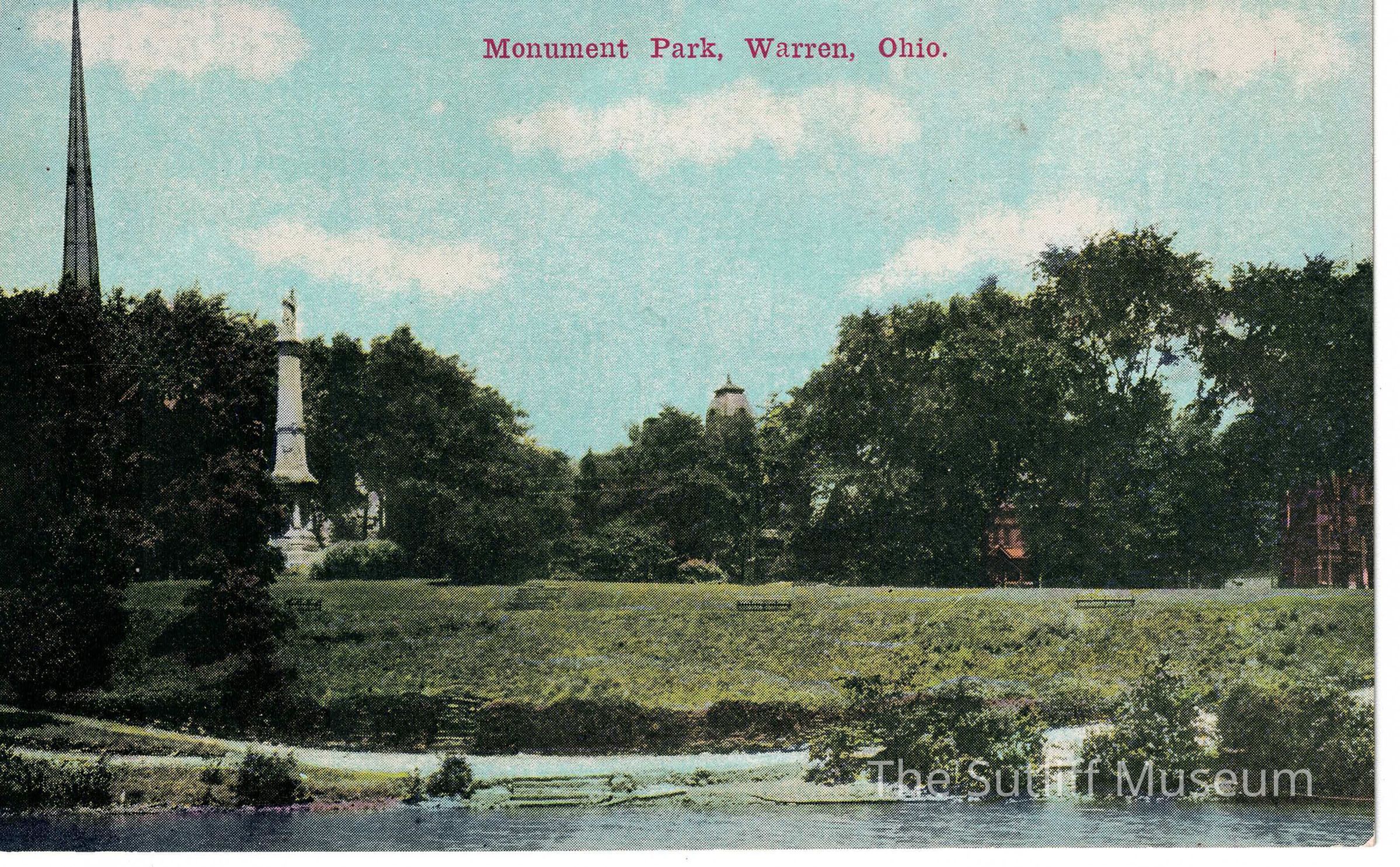 Architecture, Art, Artifacts, Correspondence/Postcard, Cultural Activities, Domestic Life, People, Postal Services, Social & Personal Activity, Parks, Warren, Ohio, Monument Park