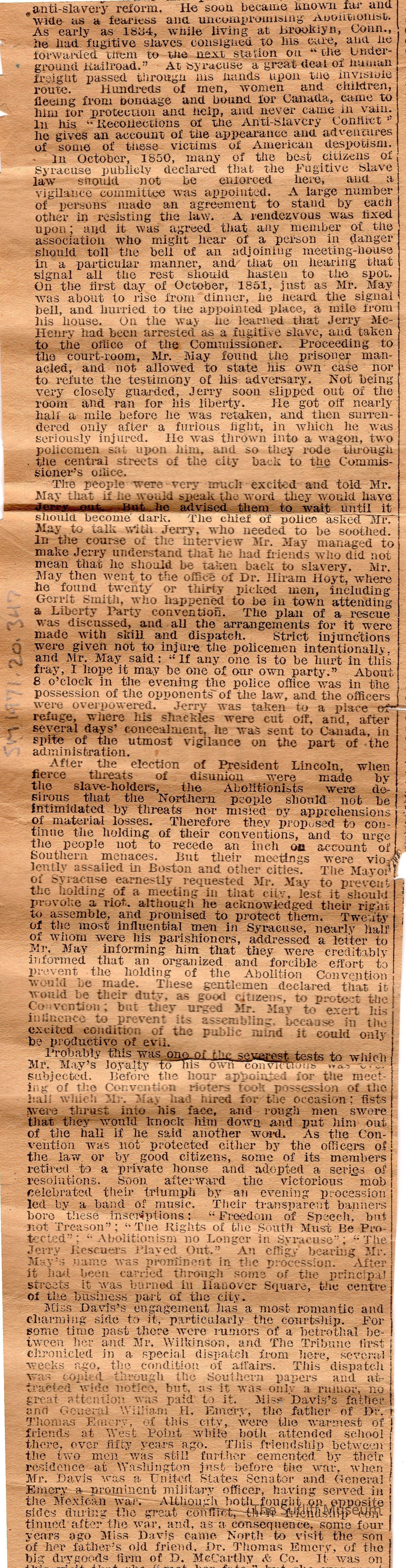 Newspaper clipping with an article about Mr. May