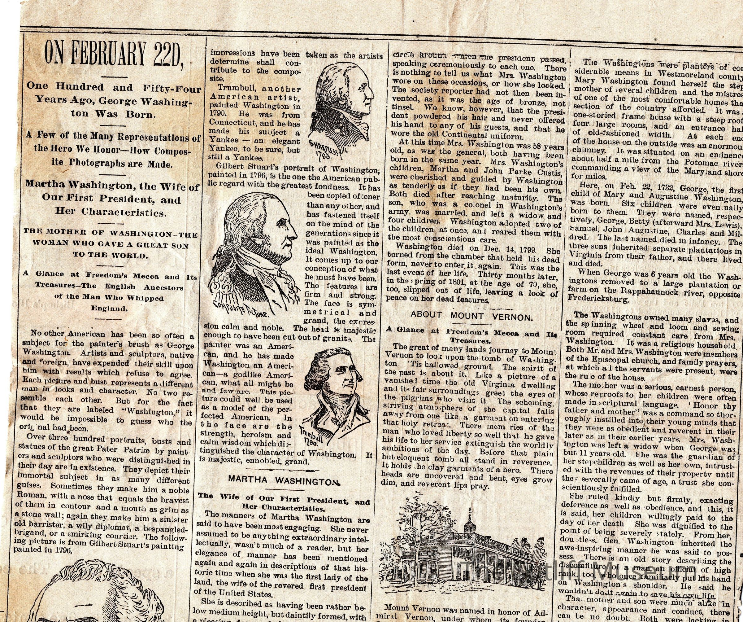 Newspaper Article About George WashingtonEntry/Object ID