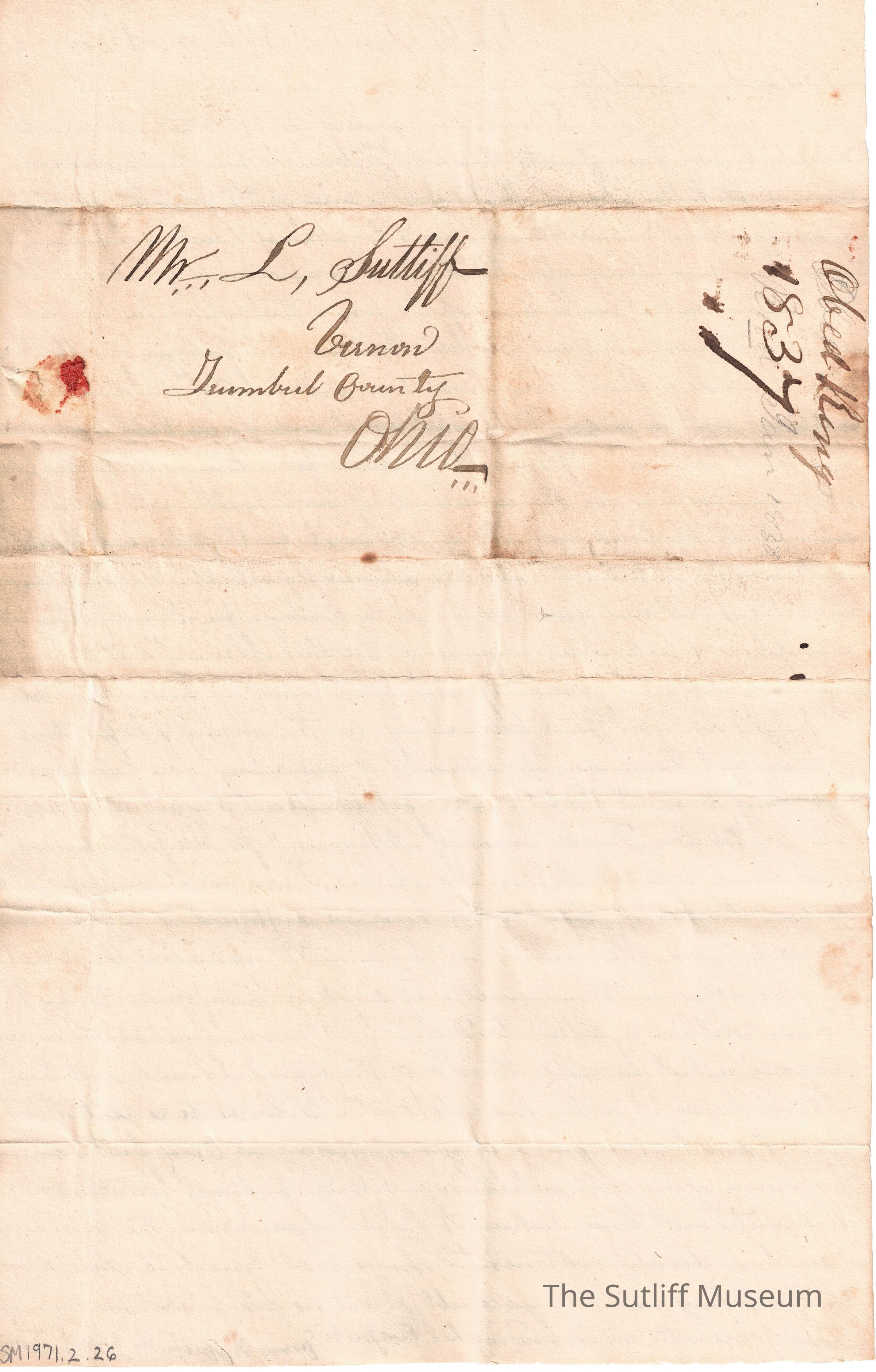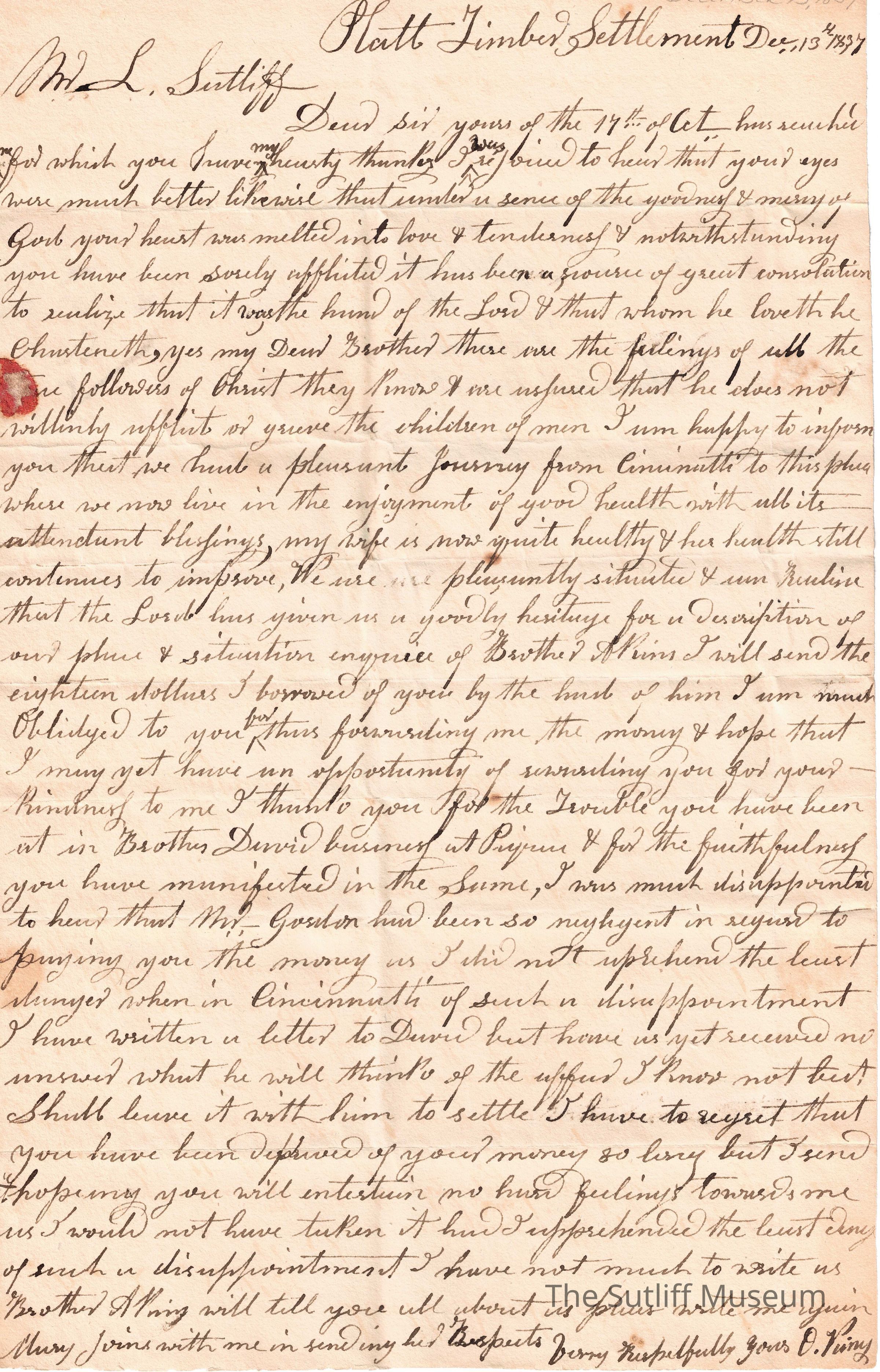 Obed King writes to Levi Sutliff thanking him for loaning him money and hopes to return his kindness someday. King and his wife have settled to their new homeCollection