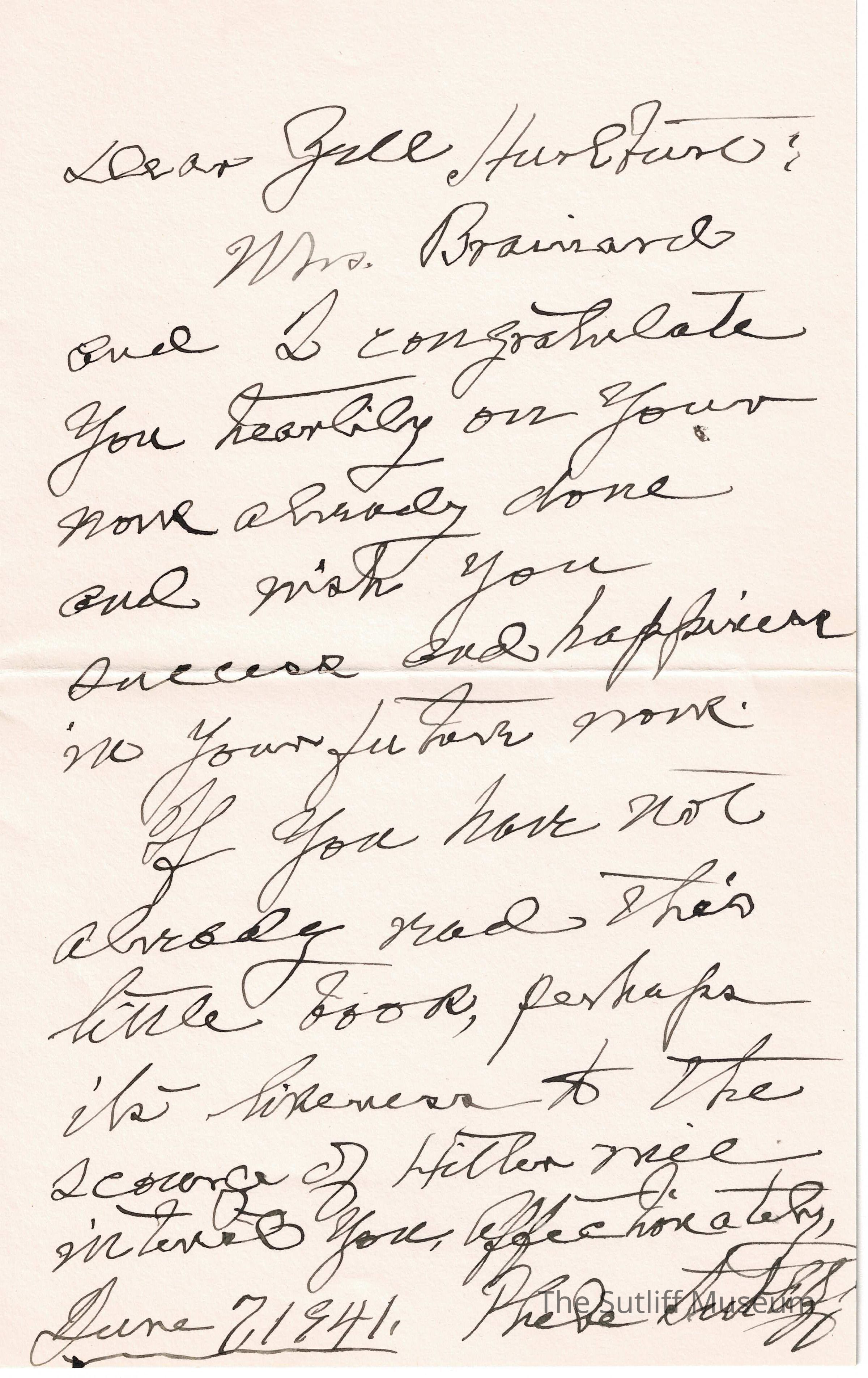 P.T. Sutliff to Jule H. HartfortEntry/Object ID