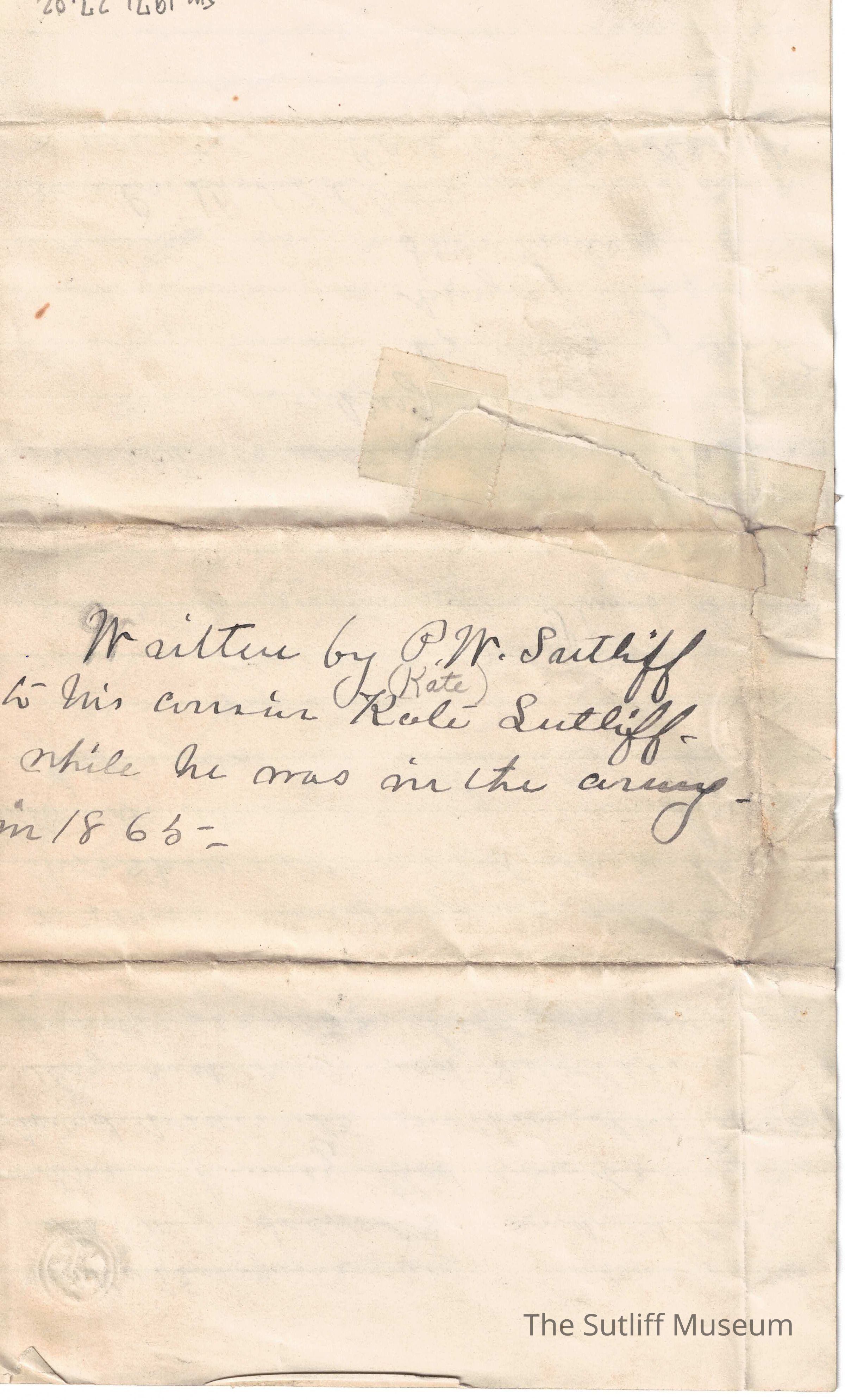 1860s, Civil War, Military, Correspondence Between Sutliffs, FamilyDescription