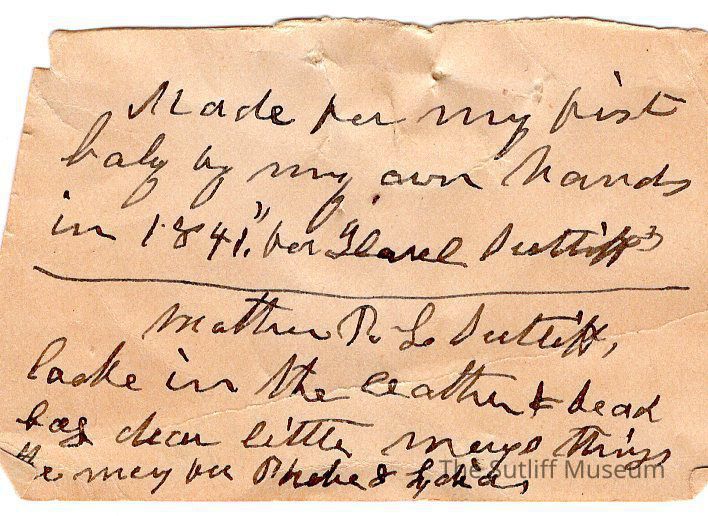Note says SM.1971.1.496a and b (pair of baby socks) were made for Flavel Sutliff by Phebe Lord Marvin Sutliff.Relationships