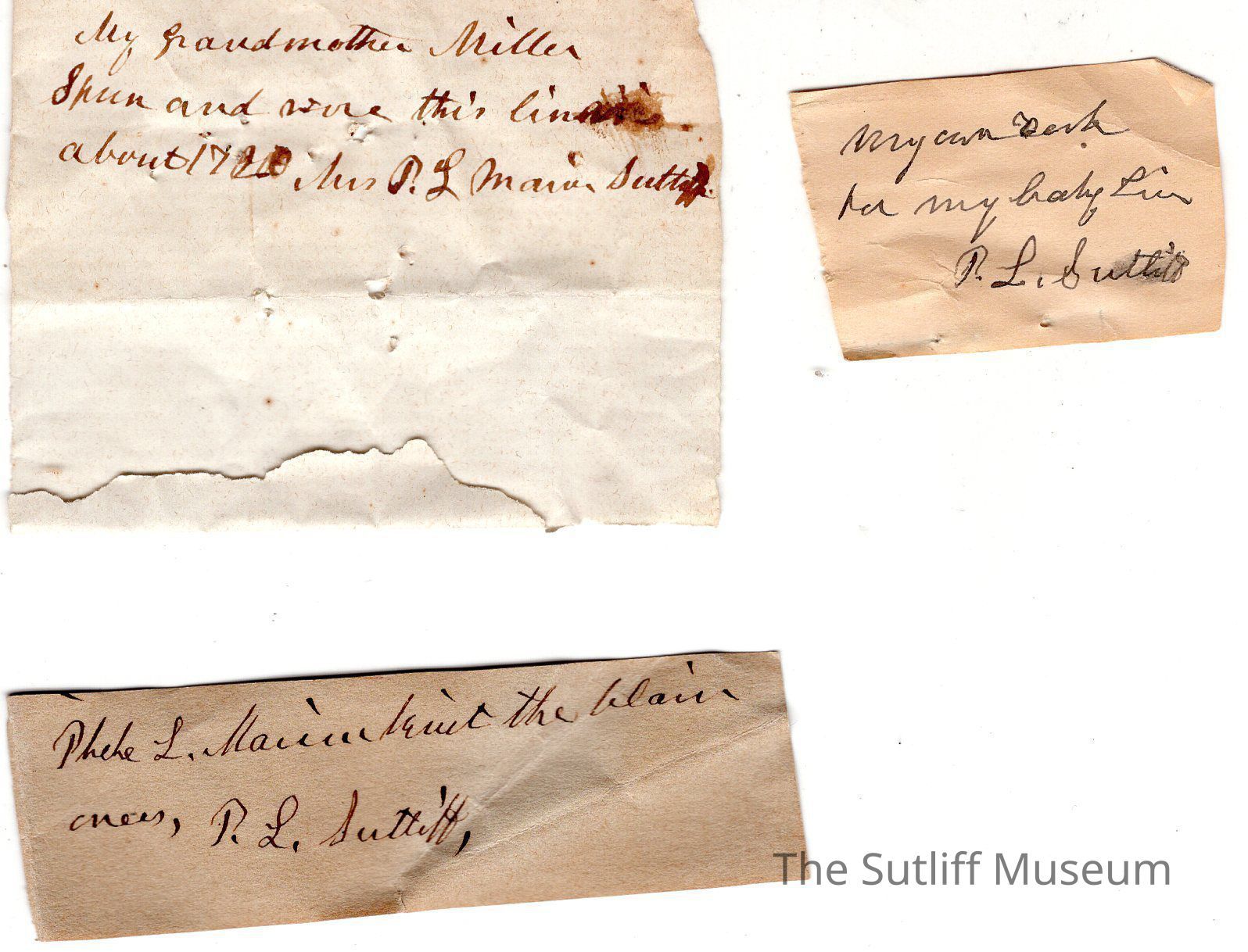 Three small handwritten notes by Phebe L. M. Sutliff.