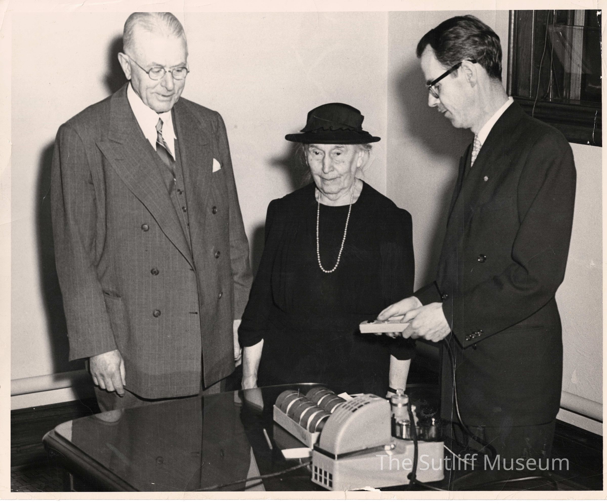A photo of Phebe Temperance Sutliff at the Warren Public Library for the presentation of a new ceiling projector in 1948.Relationships