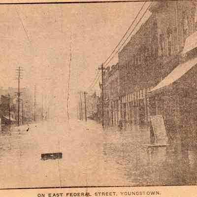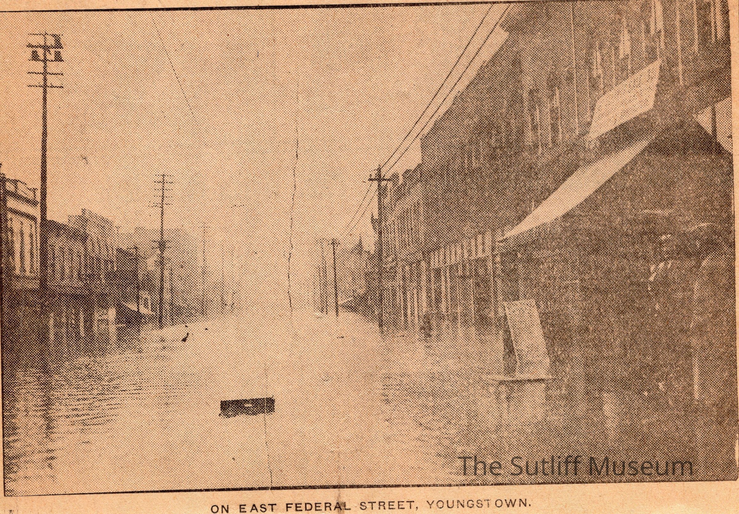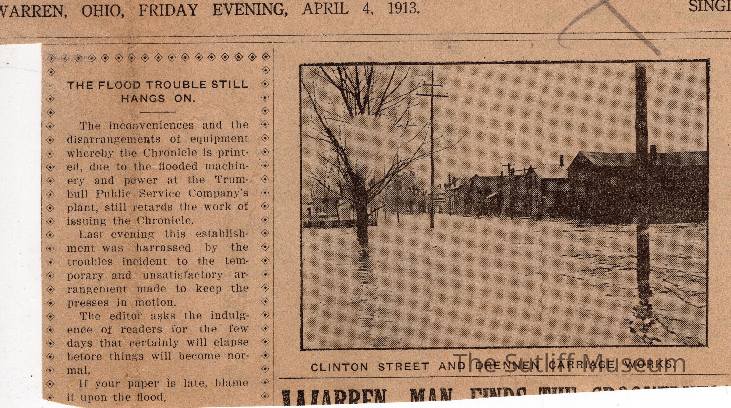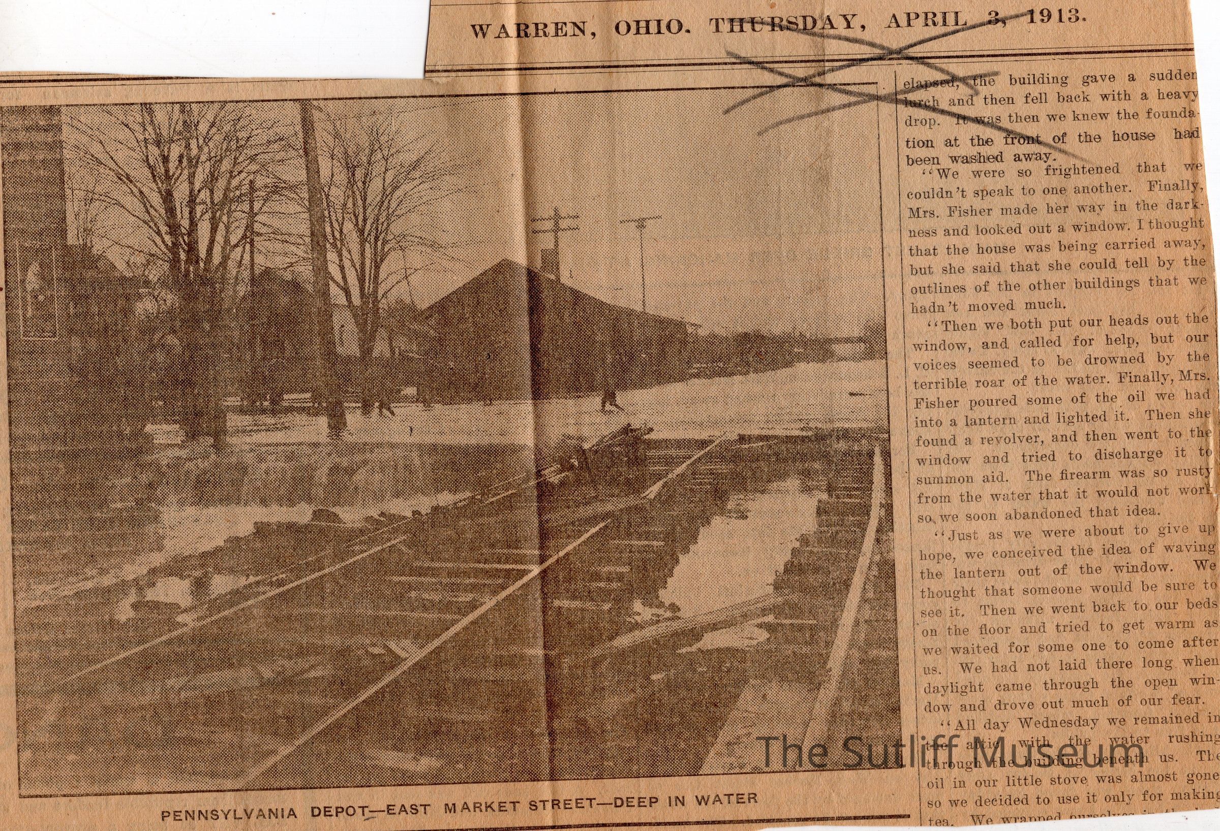 A collection of 5 newsclippings showing images of a flood in Warren, Ohio, 1913.