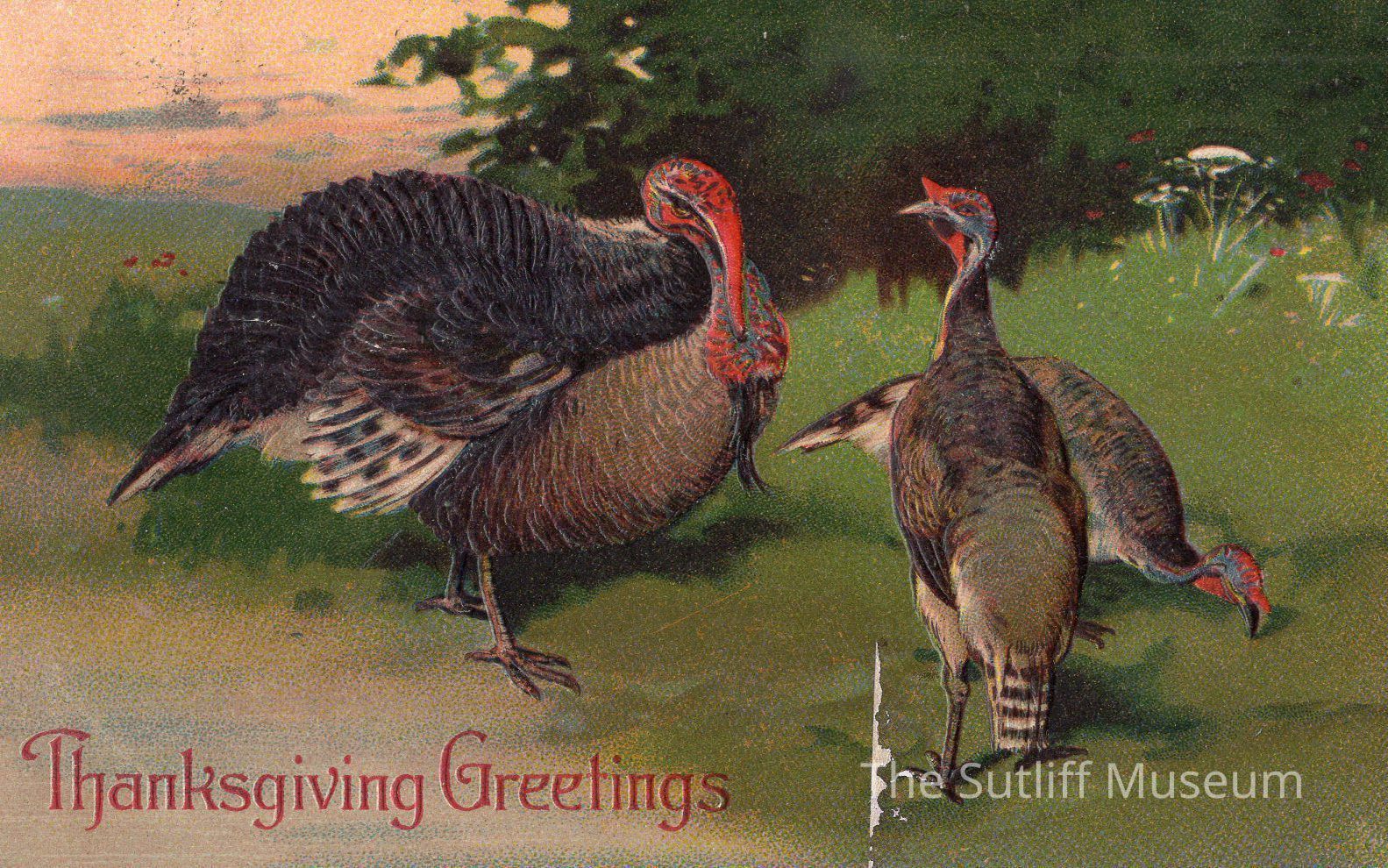 A postcard of three turkeys with the phrase "Thanksgiving Greetings"Collection