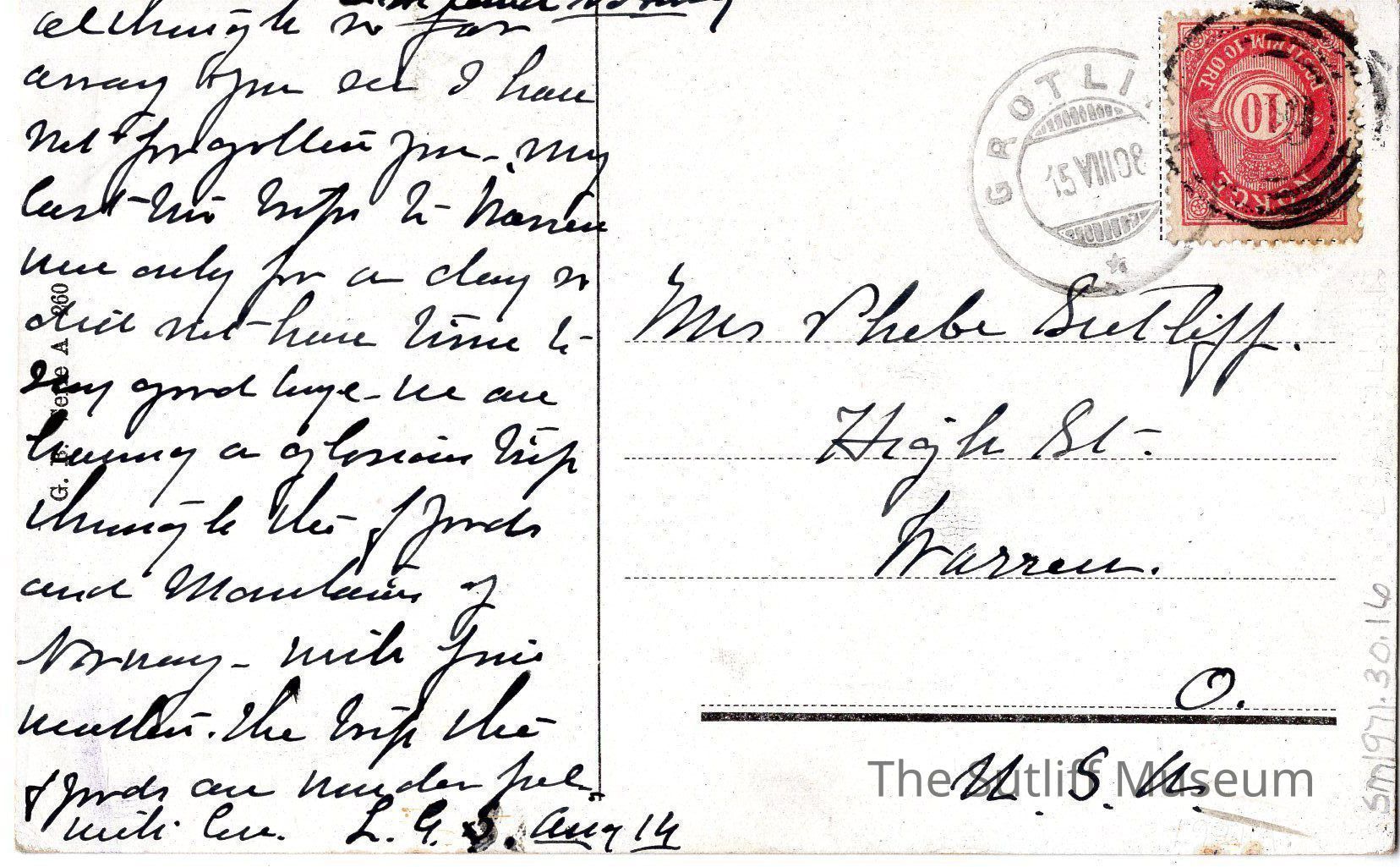 Postcard to Mrs Phebe Sutliff from L.G.S.Entry/Object ID