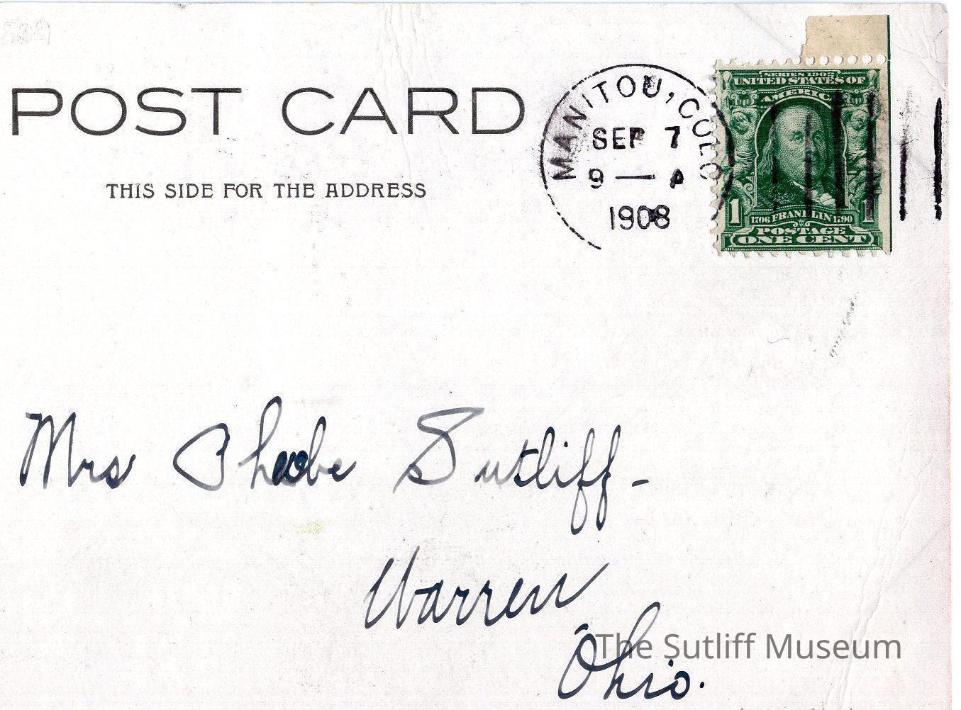 Postcard to Mrs Phebe Sutliff from Robert R.Entry/Object ID