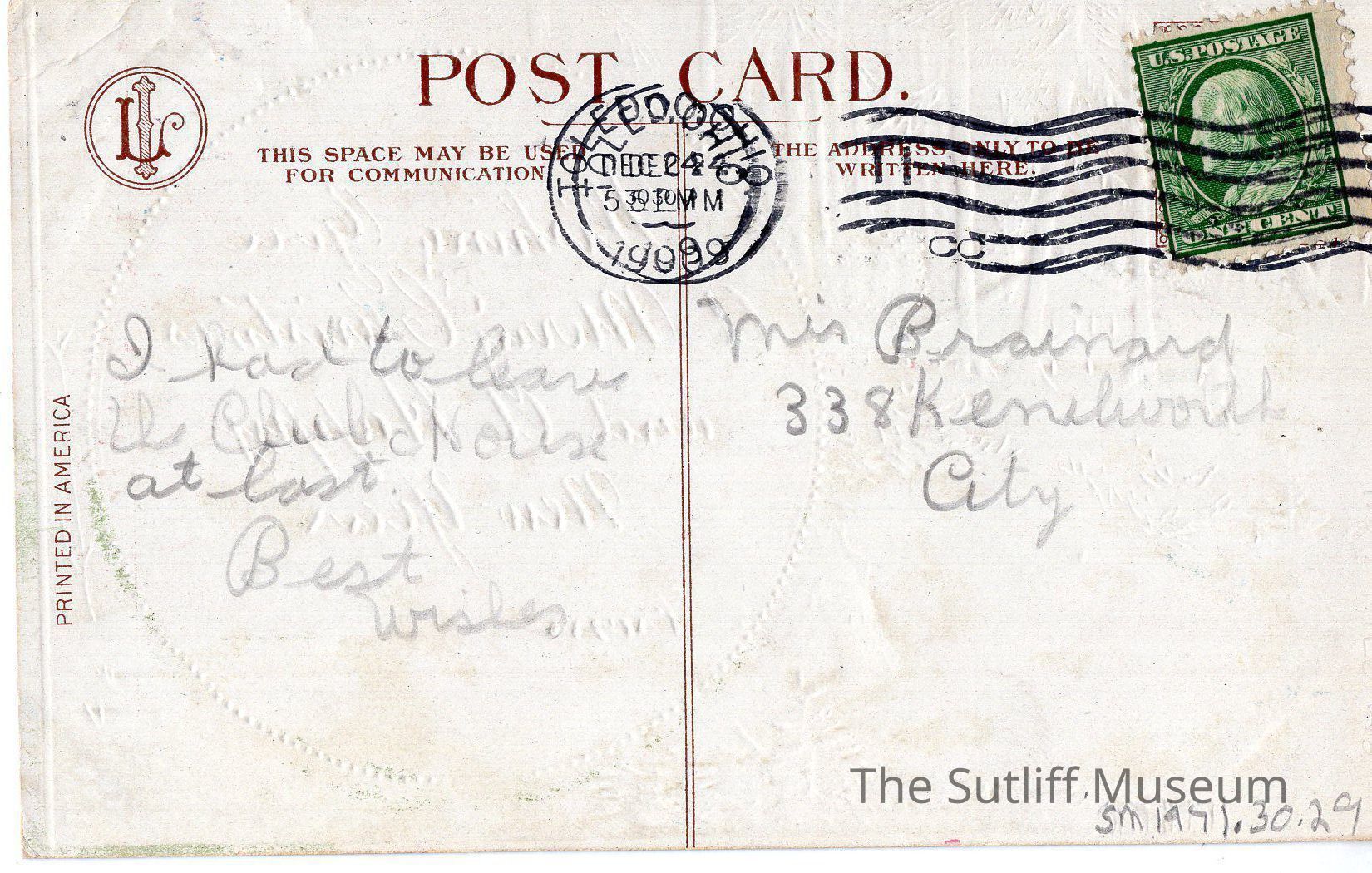 Correspondence/Postcard, Postal Services, Social & Personal Activity, Warren, 65th Regiment ArmoryRelationships