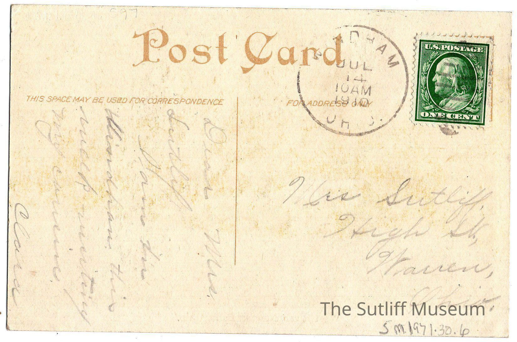Postcard to Mrs. Sutliff from ClaraEntry/Object ID