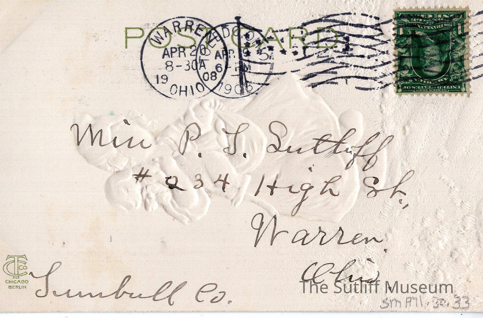 Postcard to P.T. Sutliff from L.S. BrainardEntry/Object ID