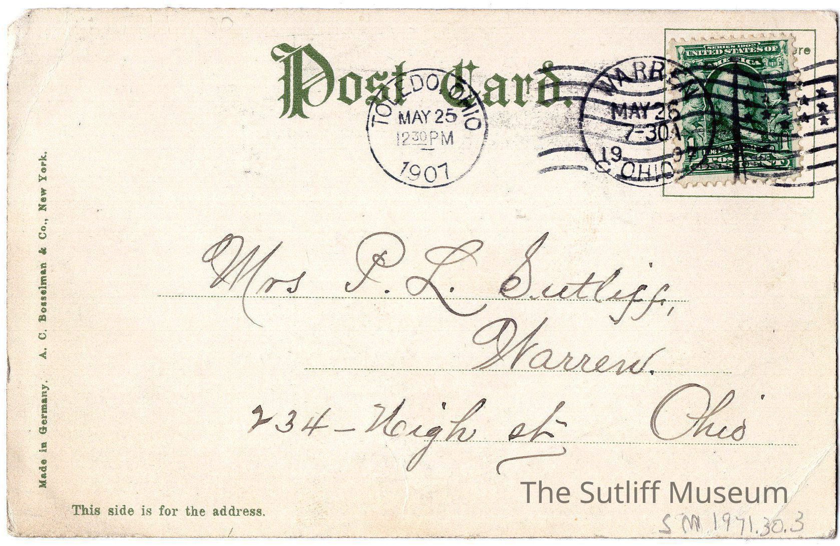 Correspondence/Postcard, Postal Services, Social & Personal Activity, Church, Warren, Toledo
