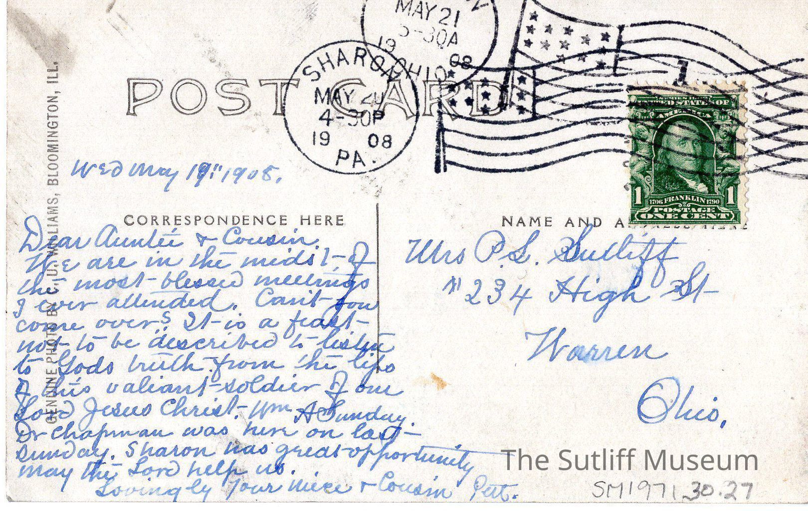 Correspondence/Postcard, Postal Services, Social & Personal Activity, Warren, 65th Regiment Armory