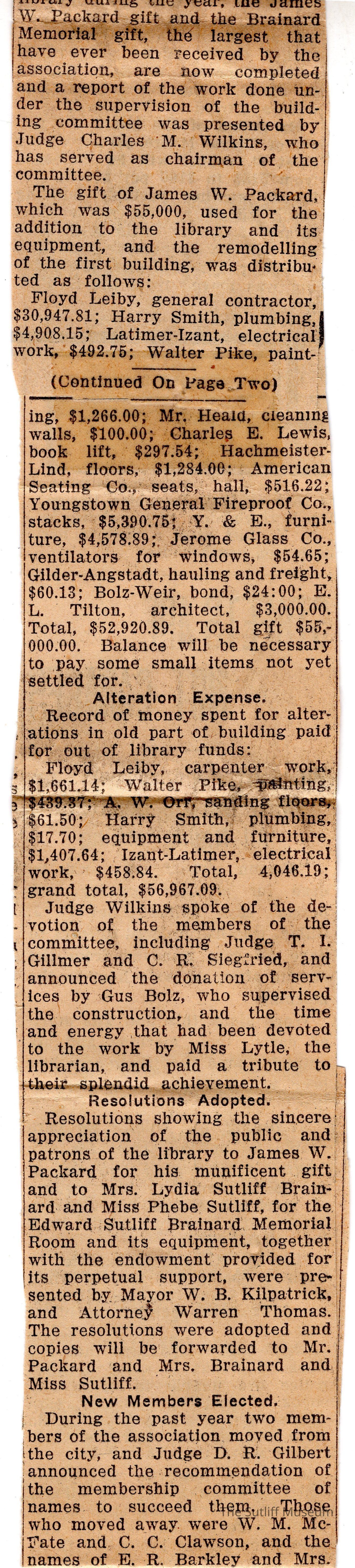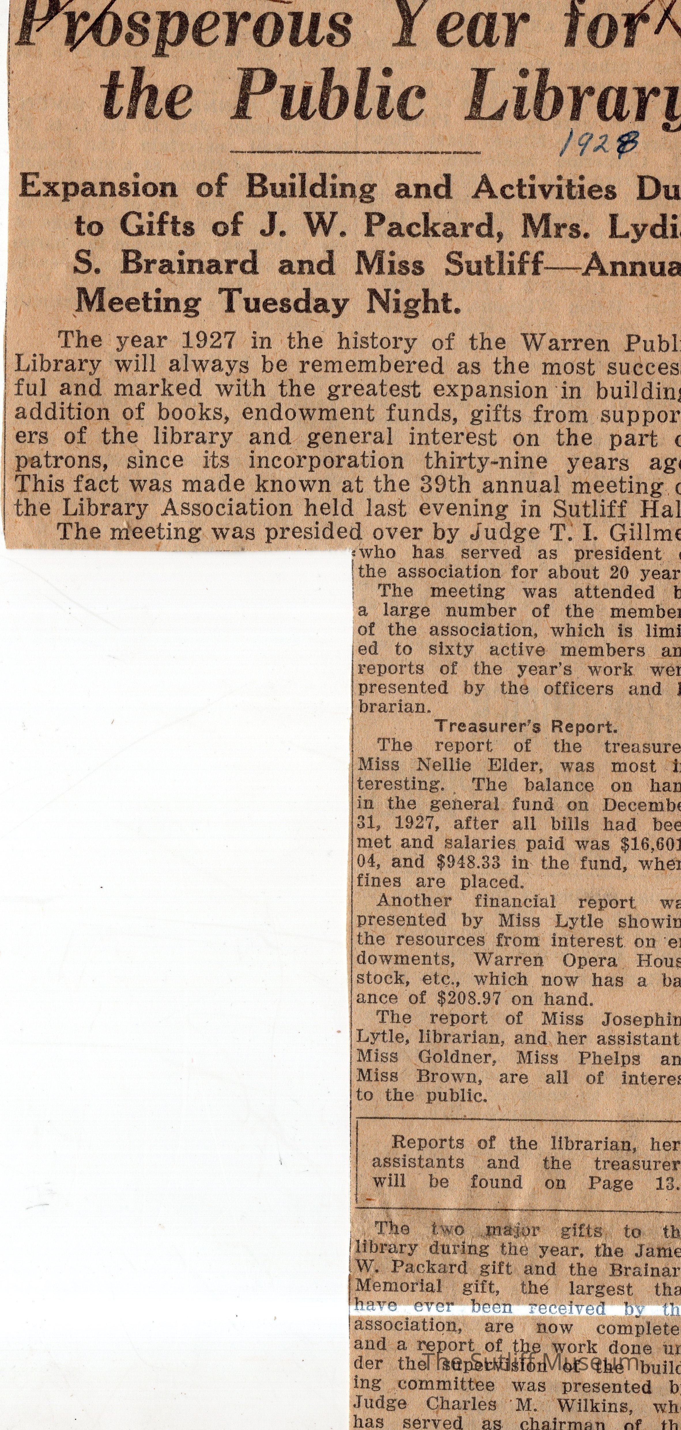 Newspaper clipping titled "Prosperous Year for the Public Library" from January 11, 1928.Archive Details