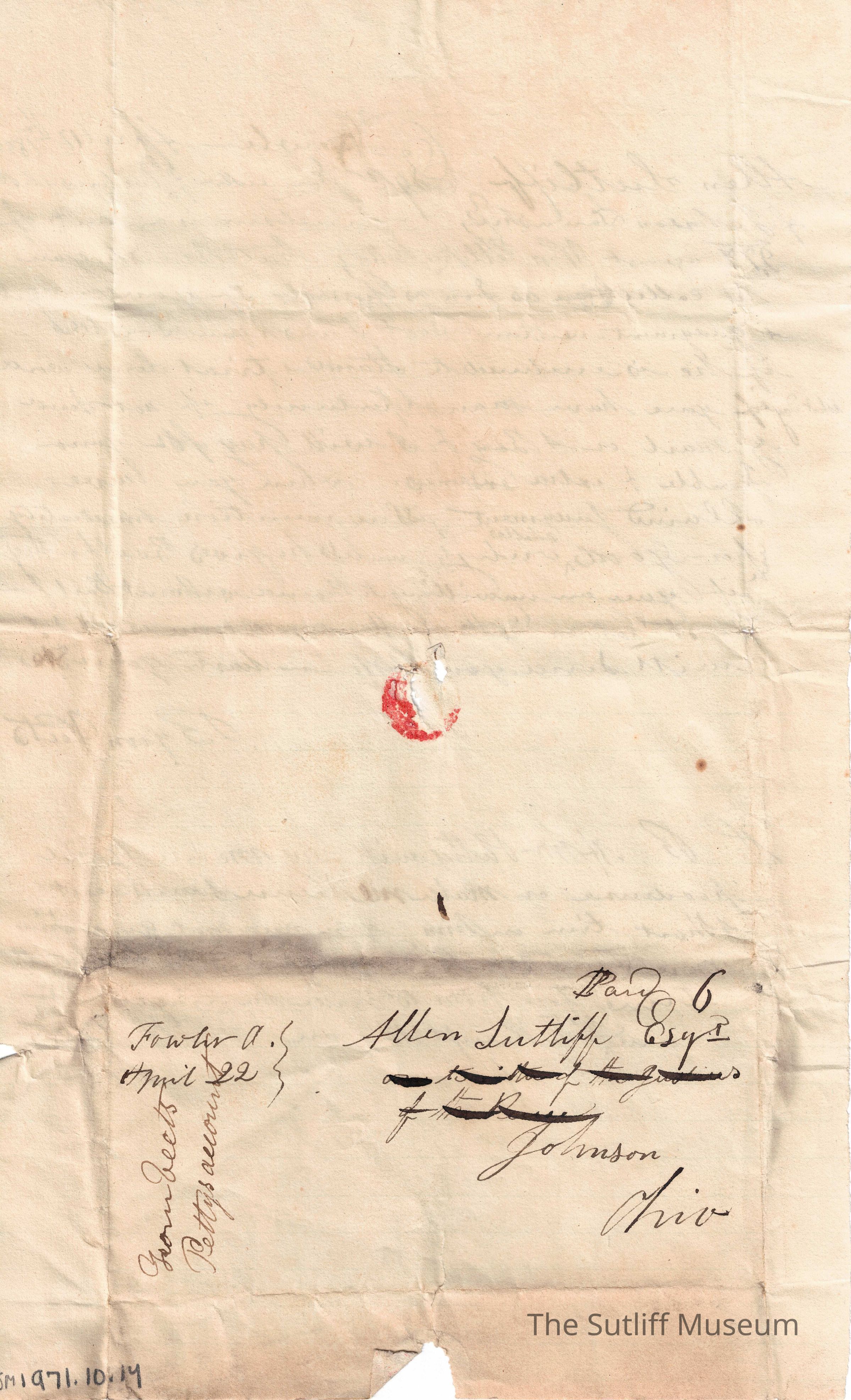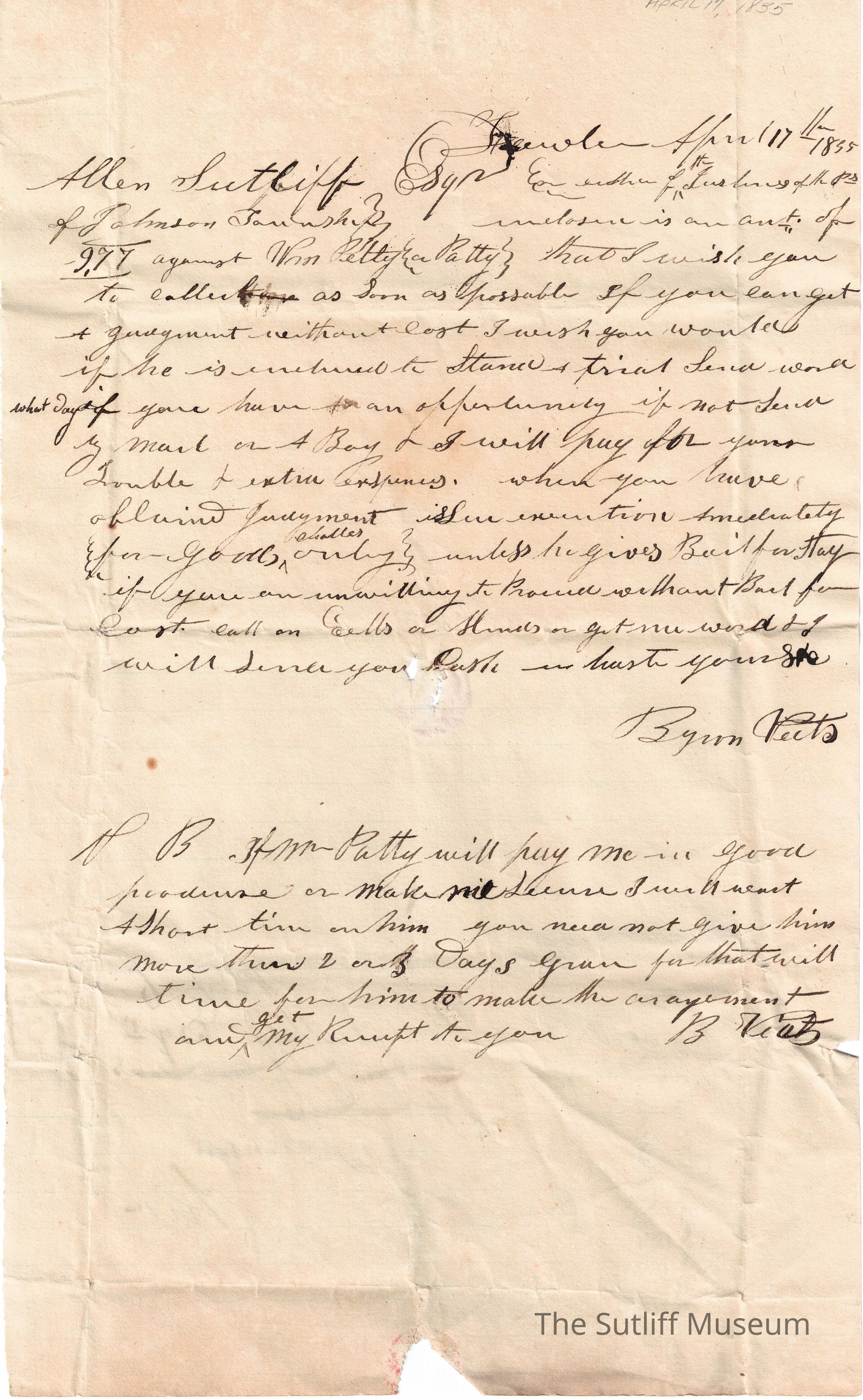 A letter from [Ryan Veets] to Allen Curtis Sutliff regardingRelationships