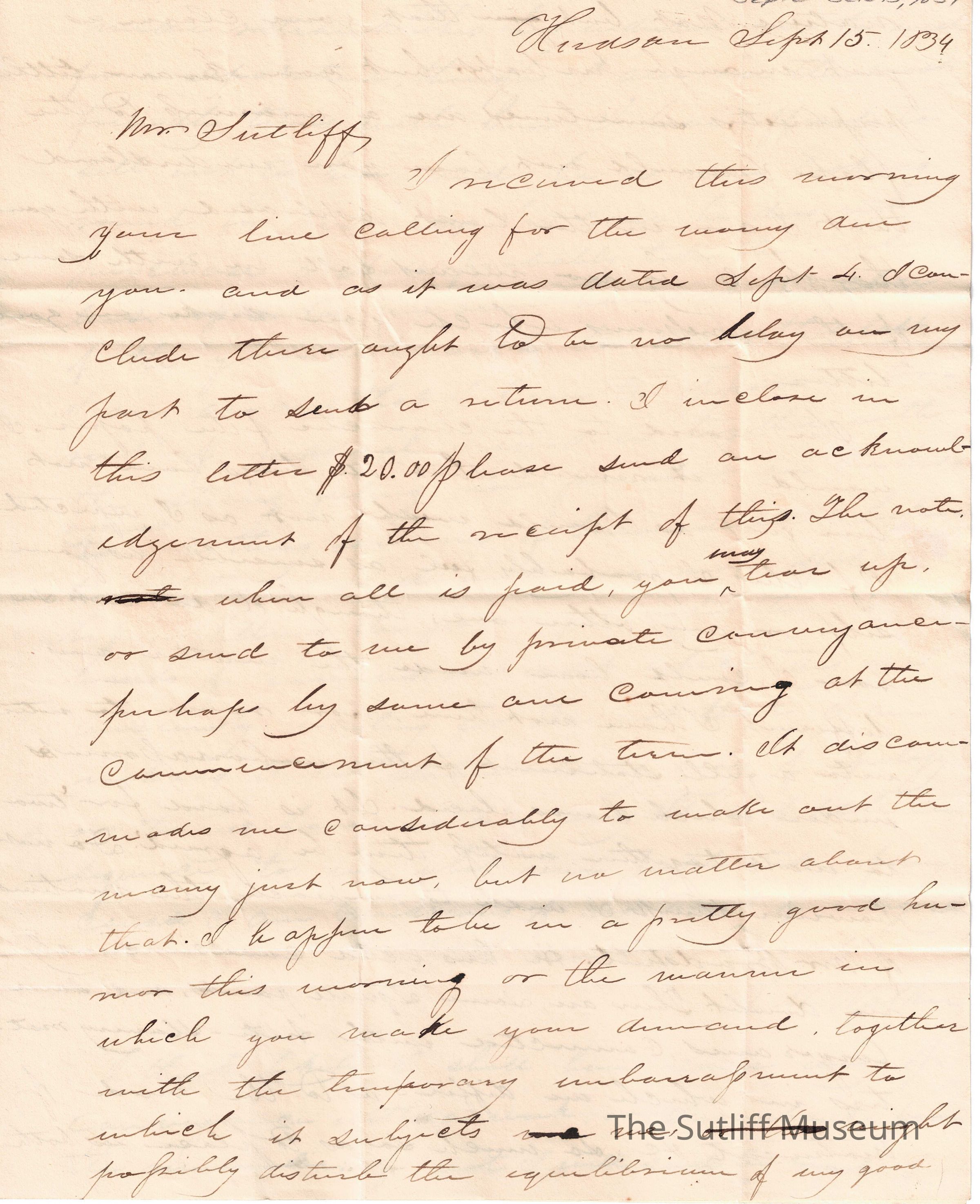 R.M. Walker to Calvin G. SutliffEntry/Object ID