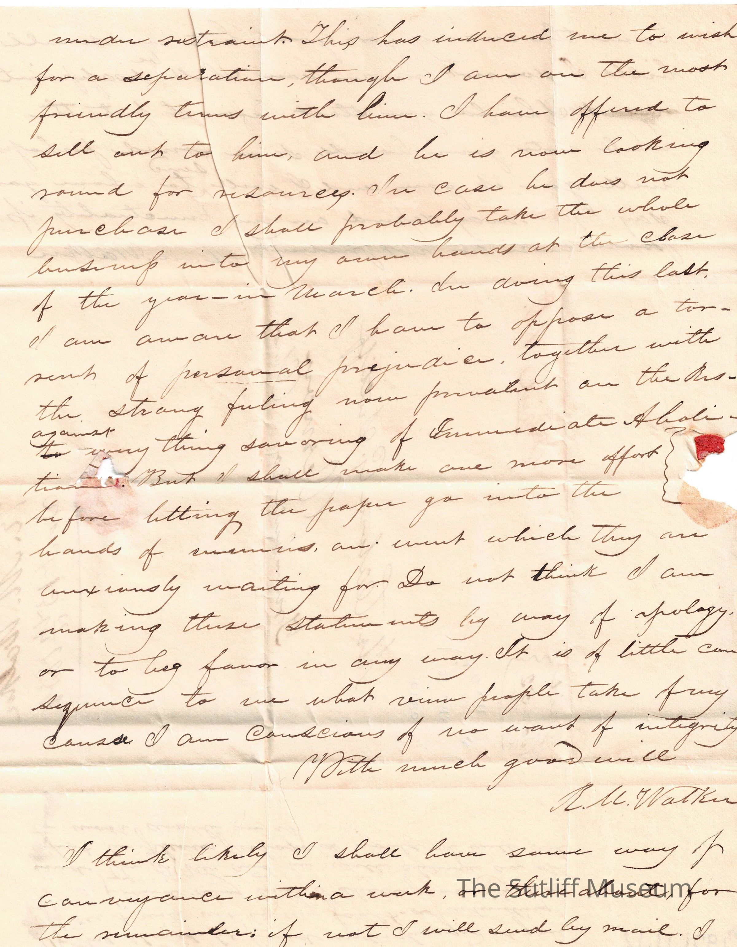 A letter from R.M. Walker to Calvin Granger Sutliff regardingRelationships