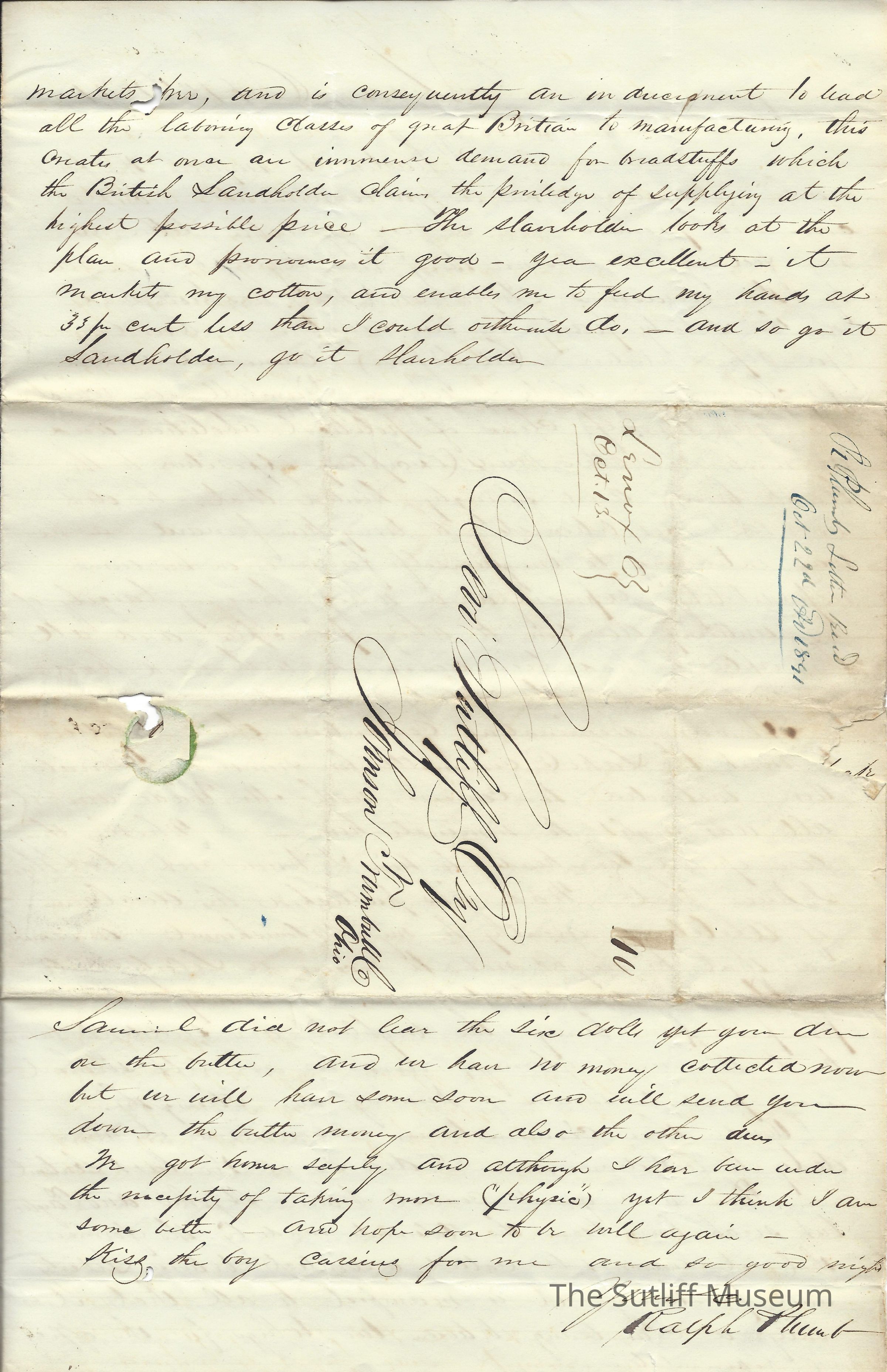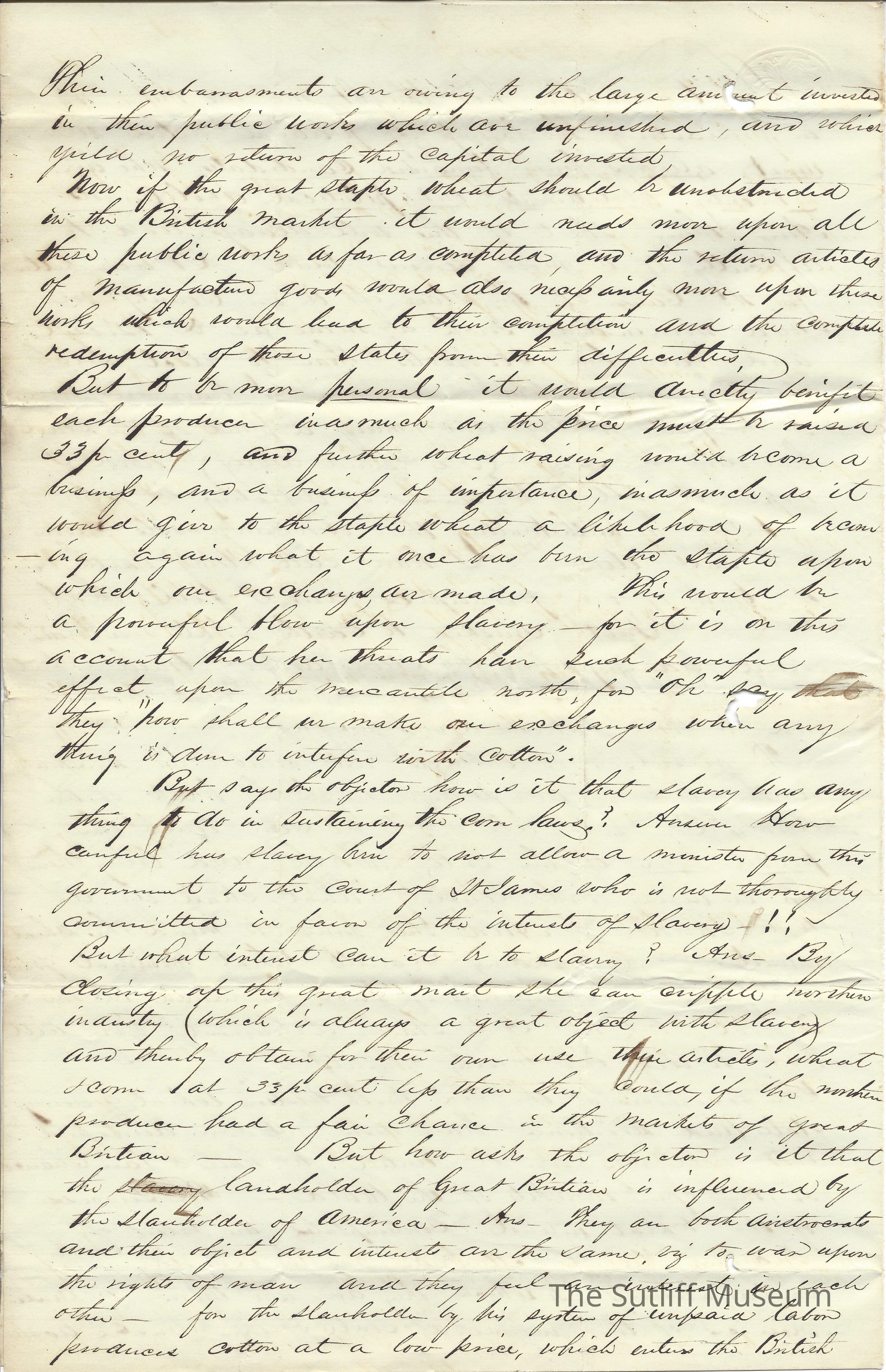 1840s, Abolitionist/Anit-Slavery Movement, Correspondence Between Sutliffs, Family, PoliticsDescription