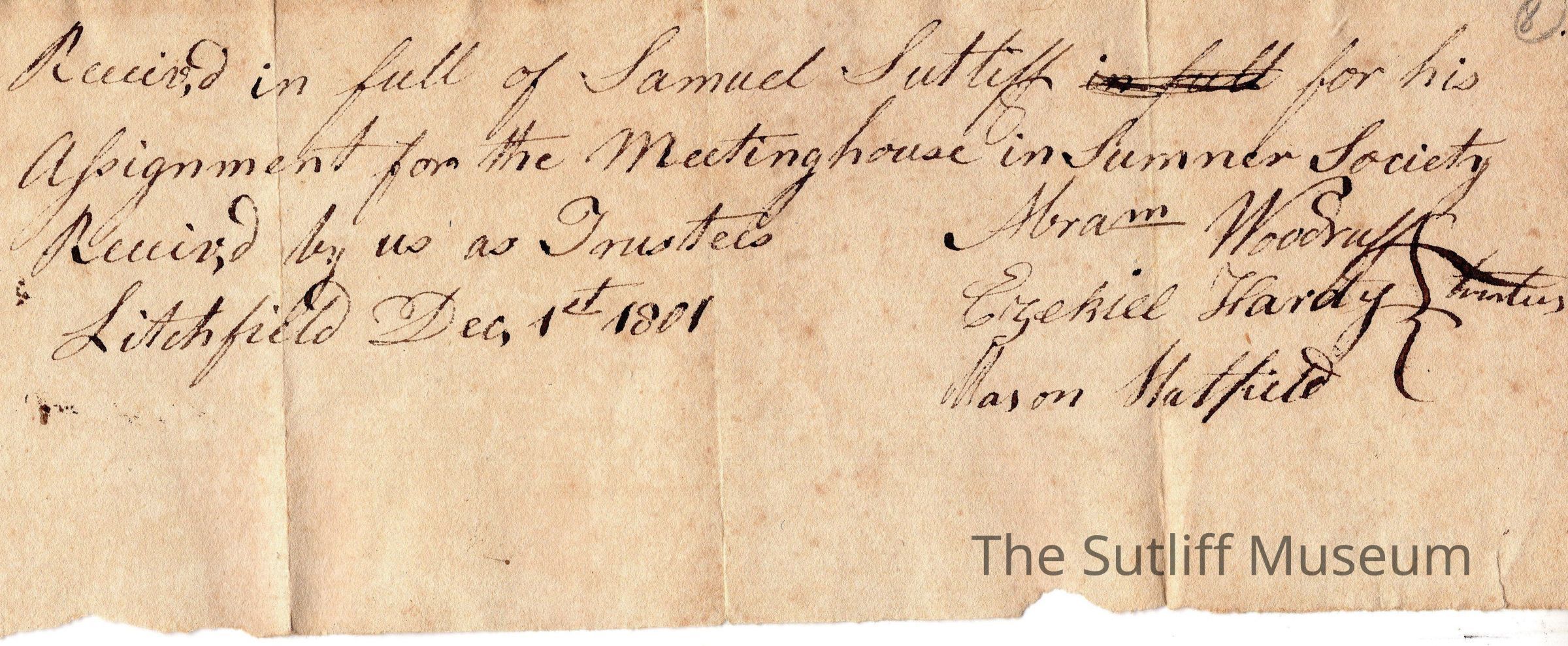A receipt from the Summer Society Trustees to Samuel Sutliff Jr.
