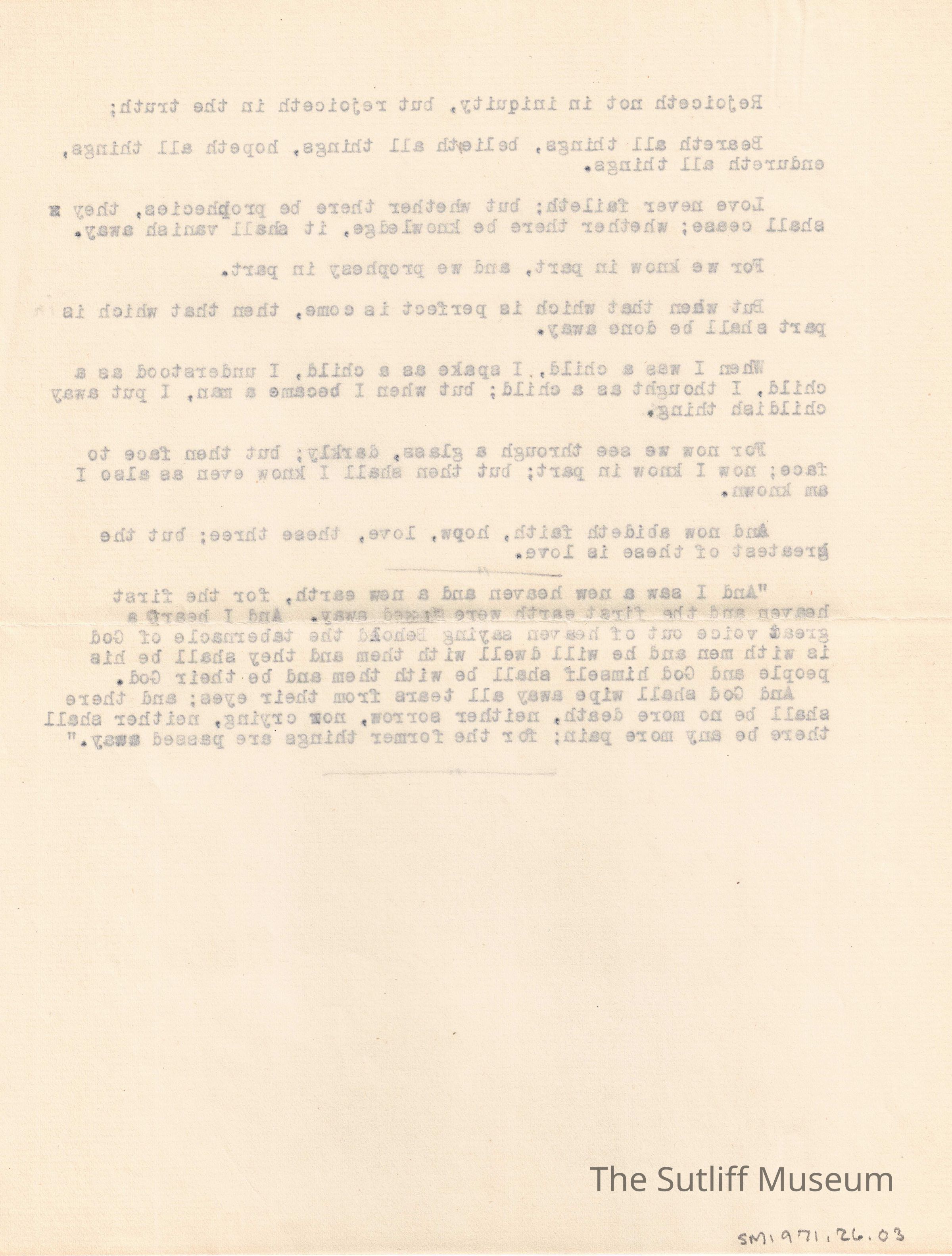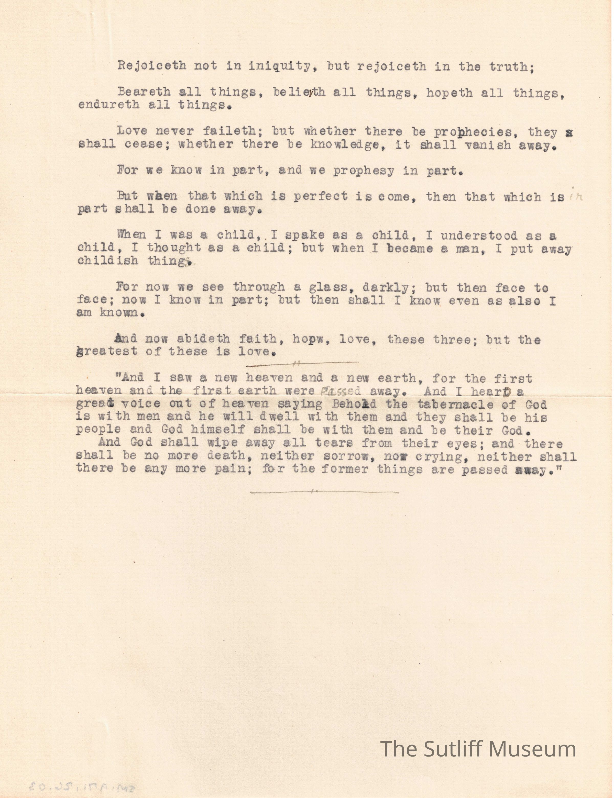 "Rejoiceth not in iniquity, but rejoieth in the truth"Entry/Object ID