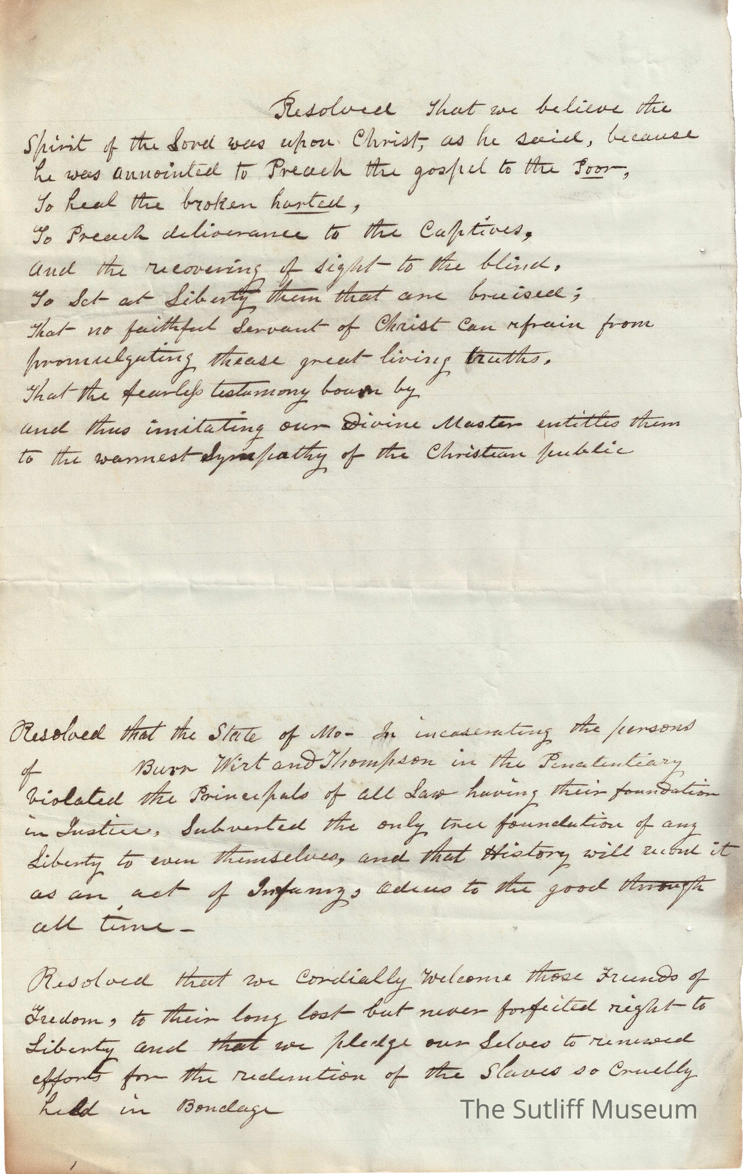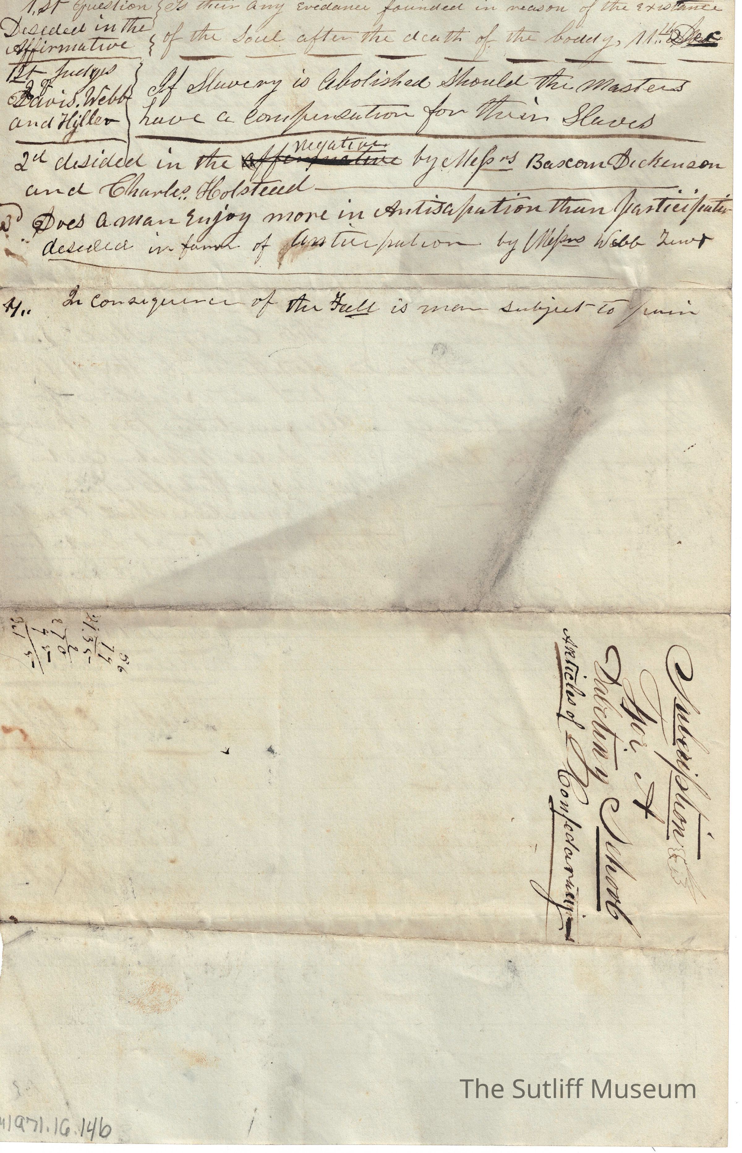 1830s, Correspondence Between Sutliffs, ReligionDescription