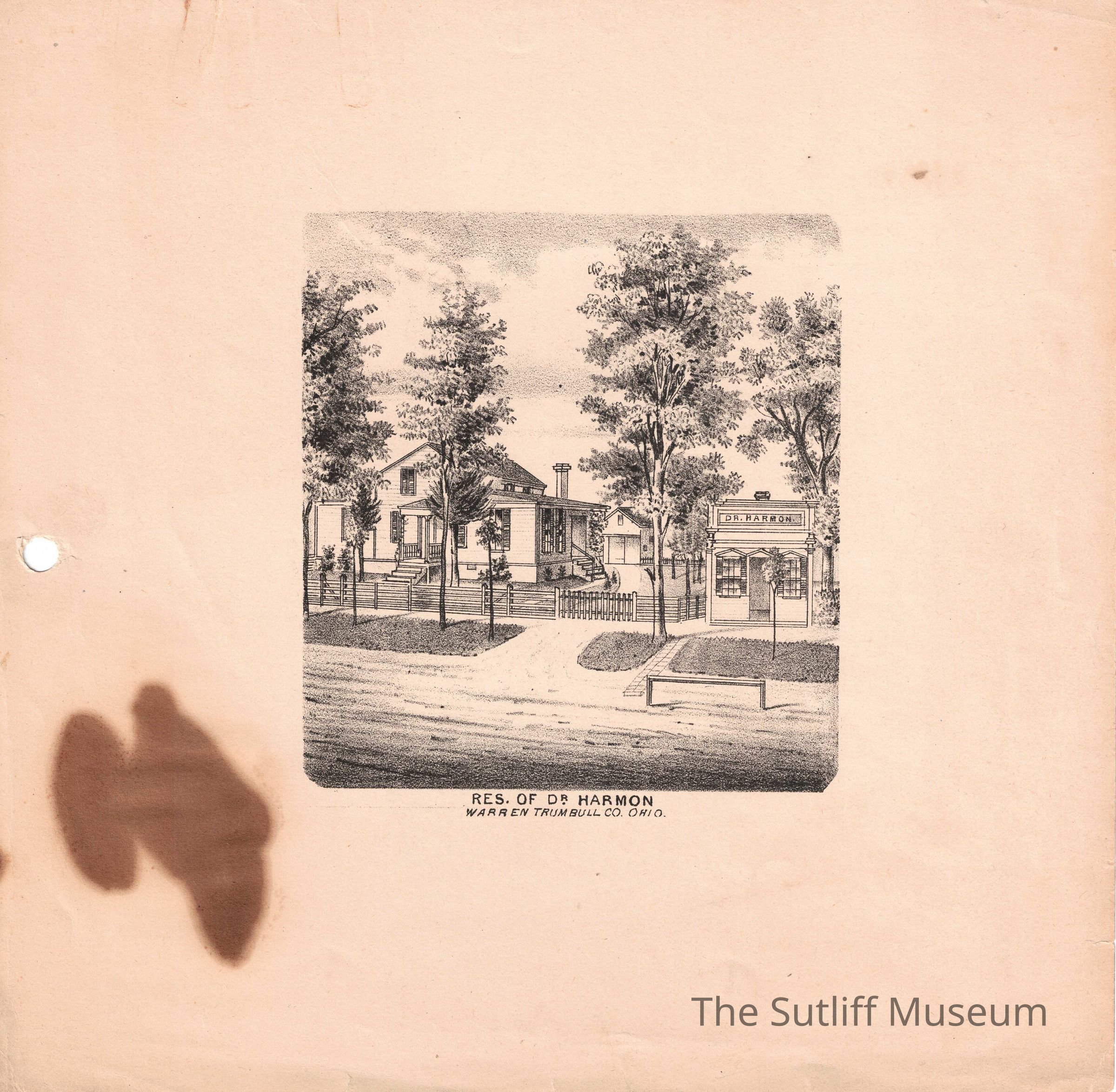 An sketch image of the Residence of Dr. Harmon in Warren Trumbull Co. Ohio.Relationships