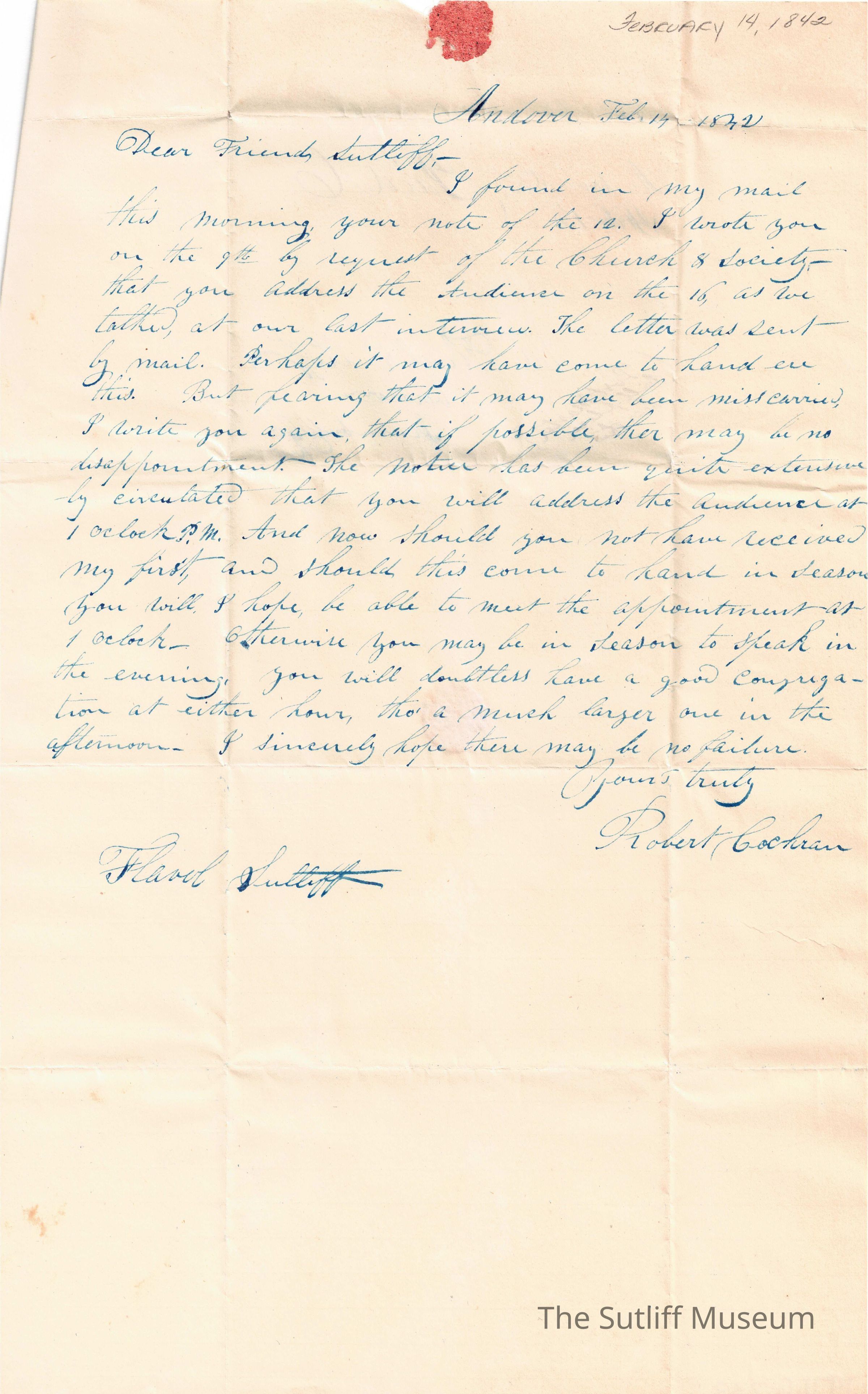 Robert Cochran to Flavel Sutliff