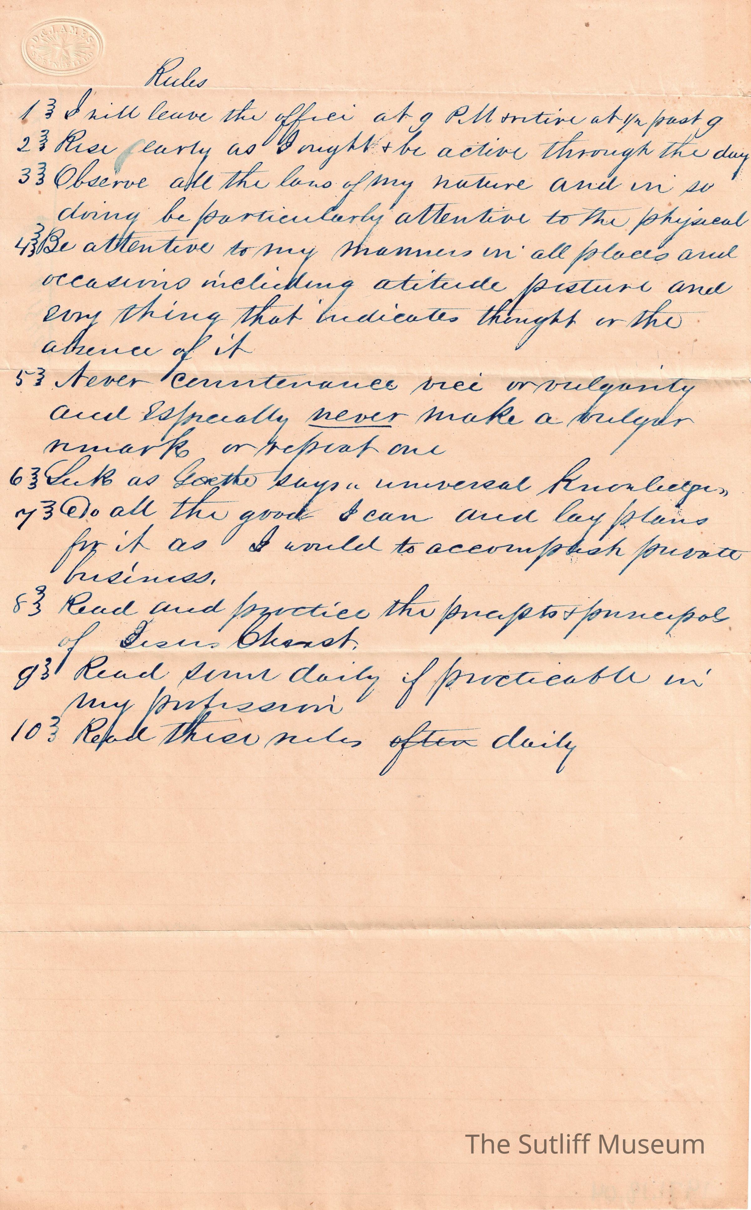 A document written by Unknown as a list of personal rules, or goals they wish to abide by.