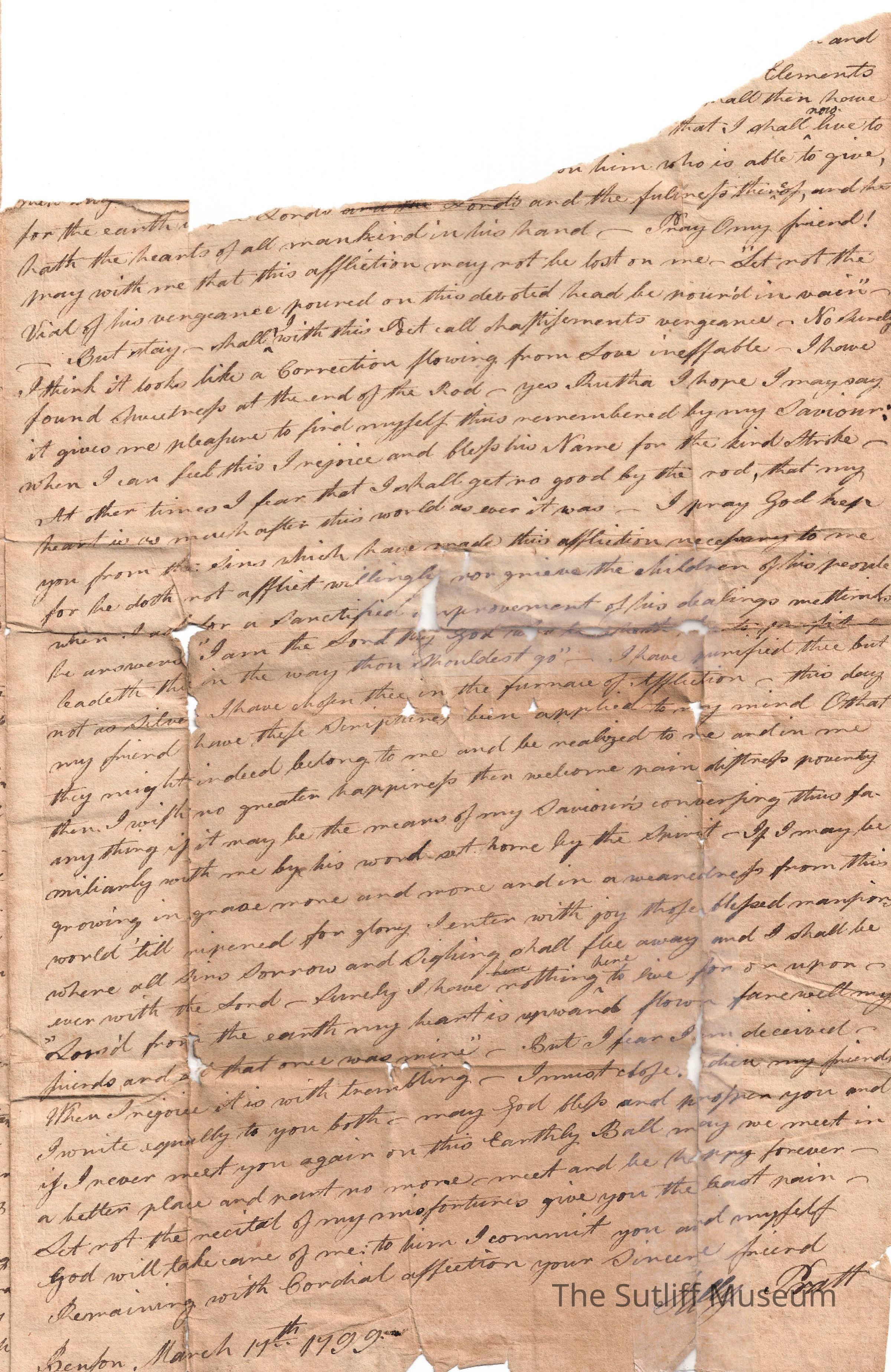 1790s, Correspondence Between Sutliffs, Religion, LandDescription