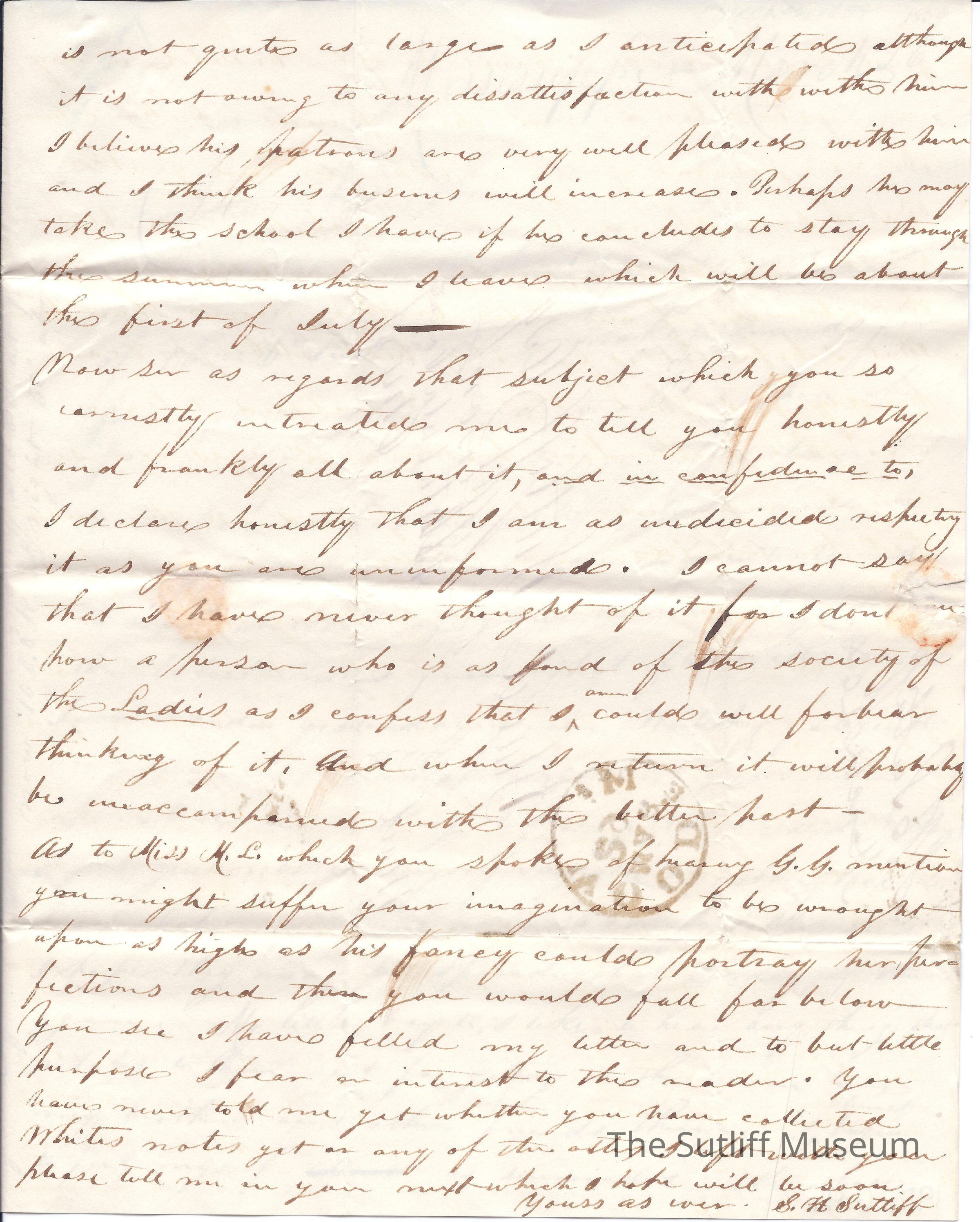 1830s, Correspondence Between Sutliffs