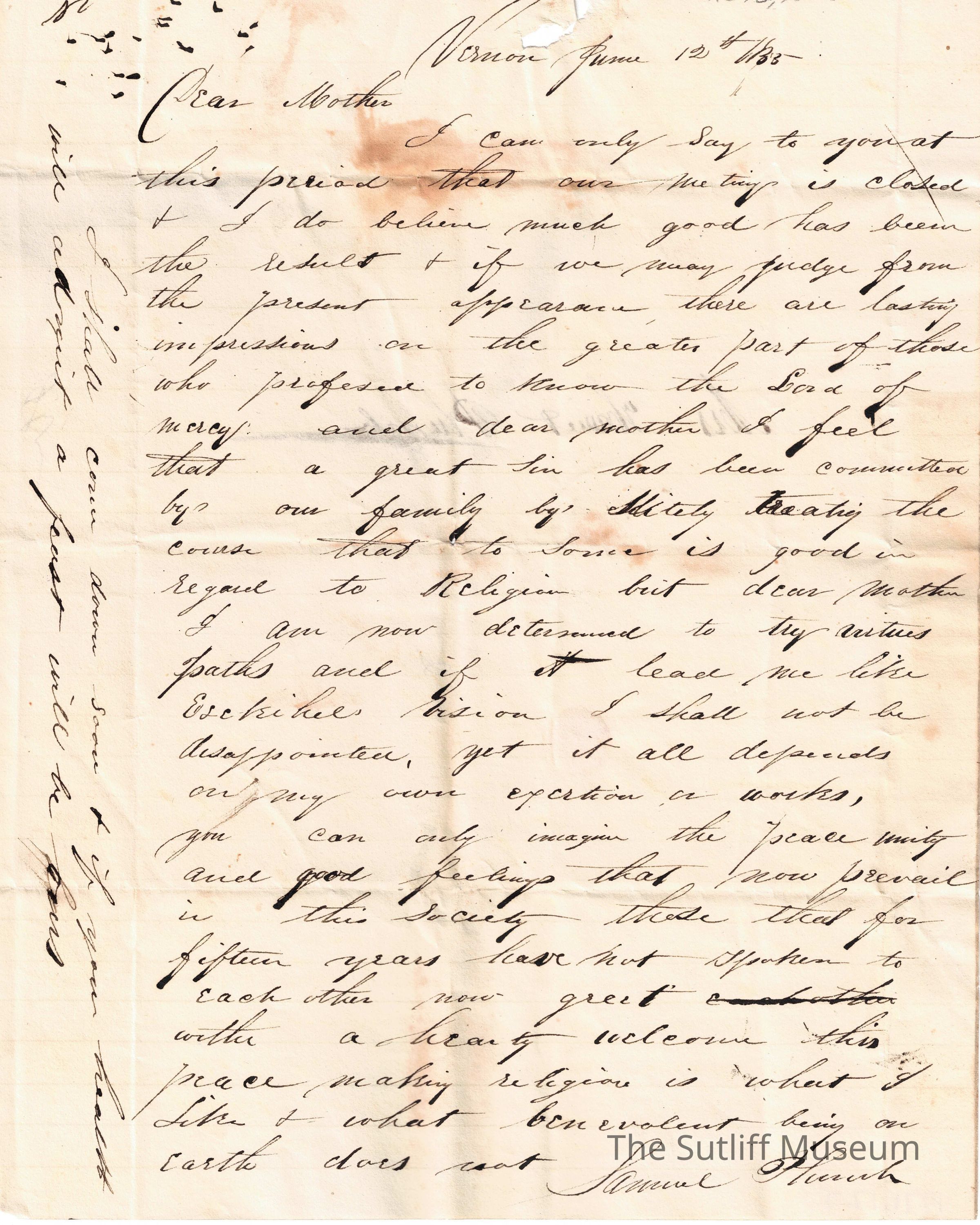 A letter from Samuel Plumb to his mother Harriet Plumb regarding a meeting, religion, and plans to visit soon.Collection