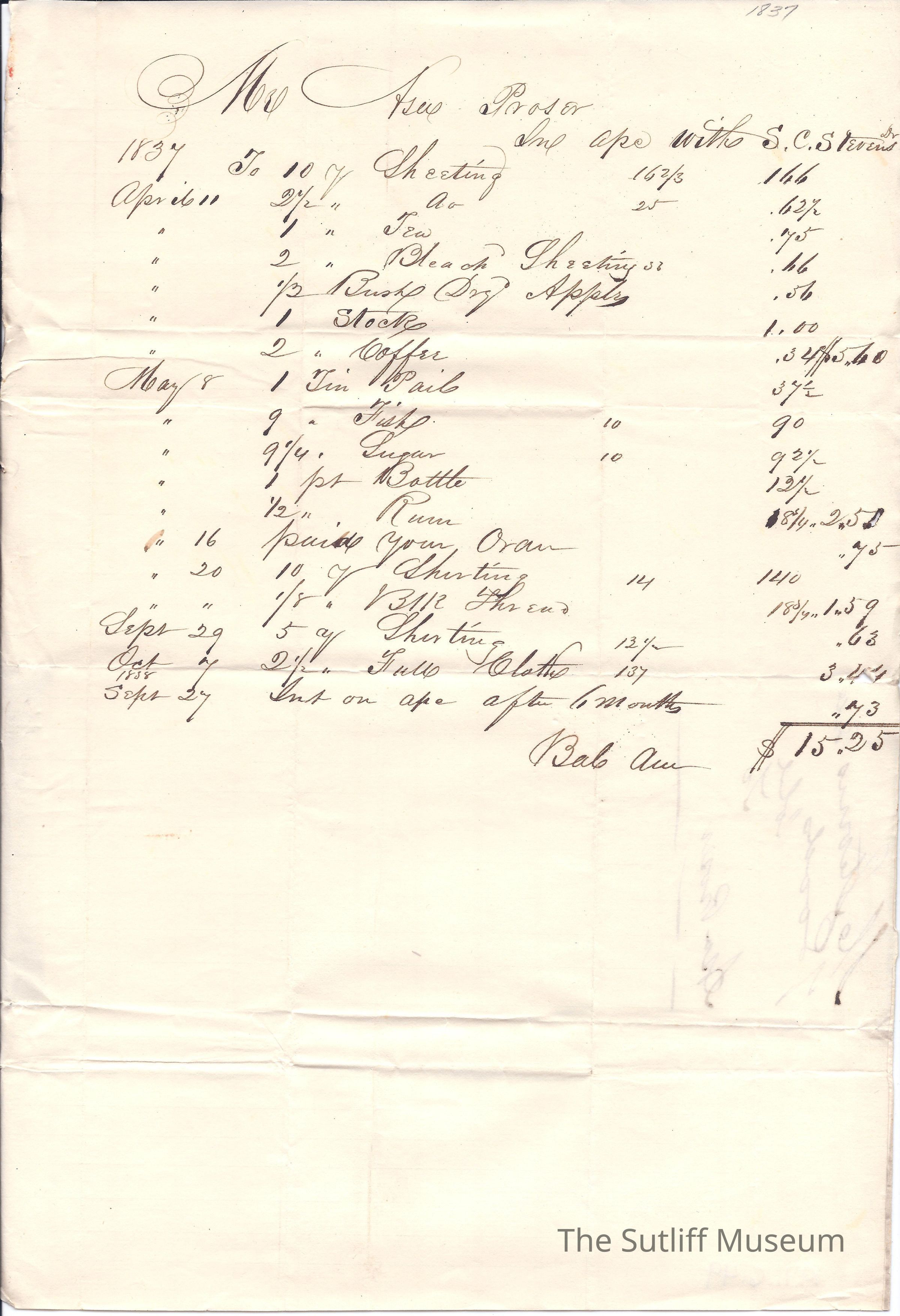 S.C. Stevens Bill Goods Sold to Asa Proser.