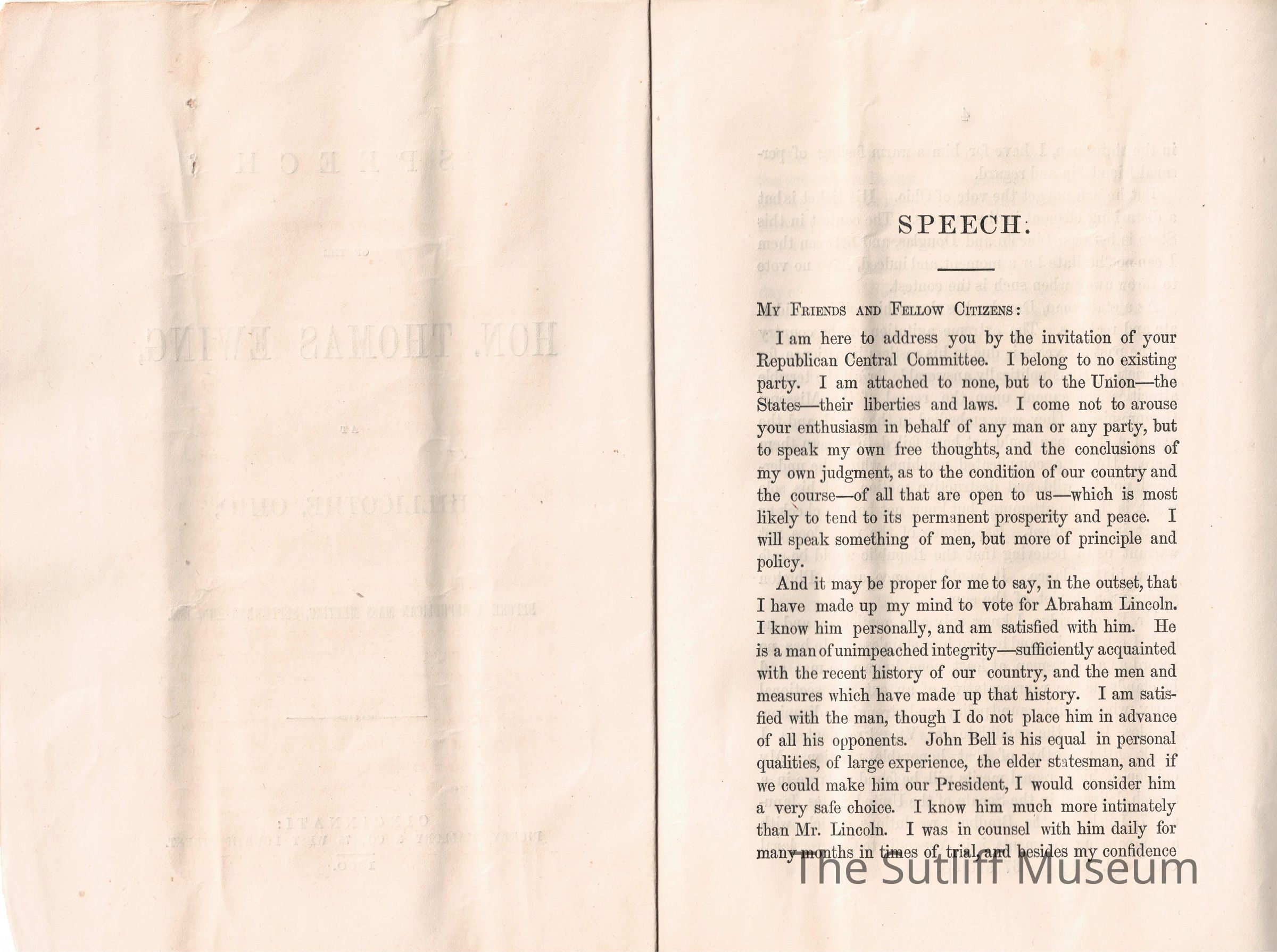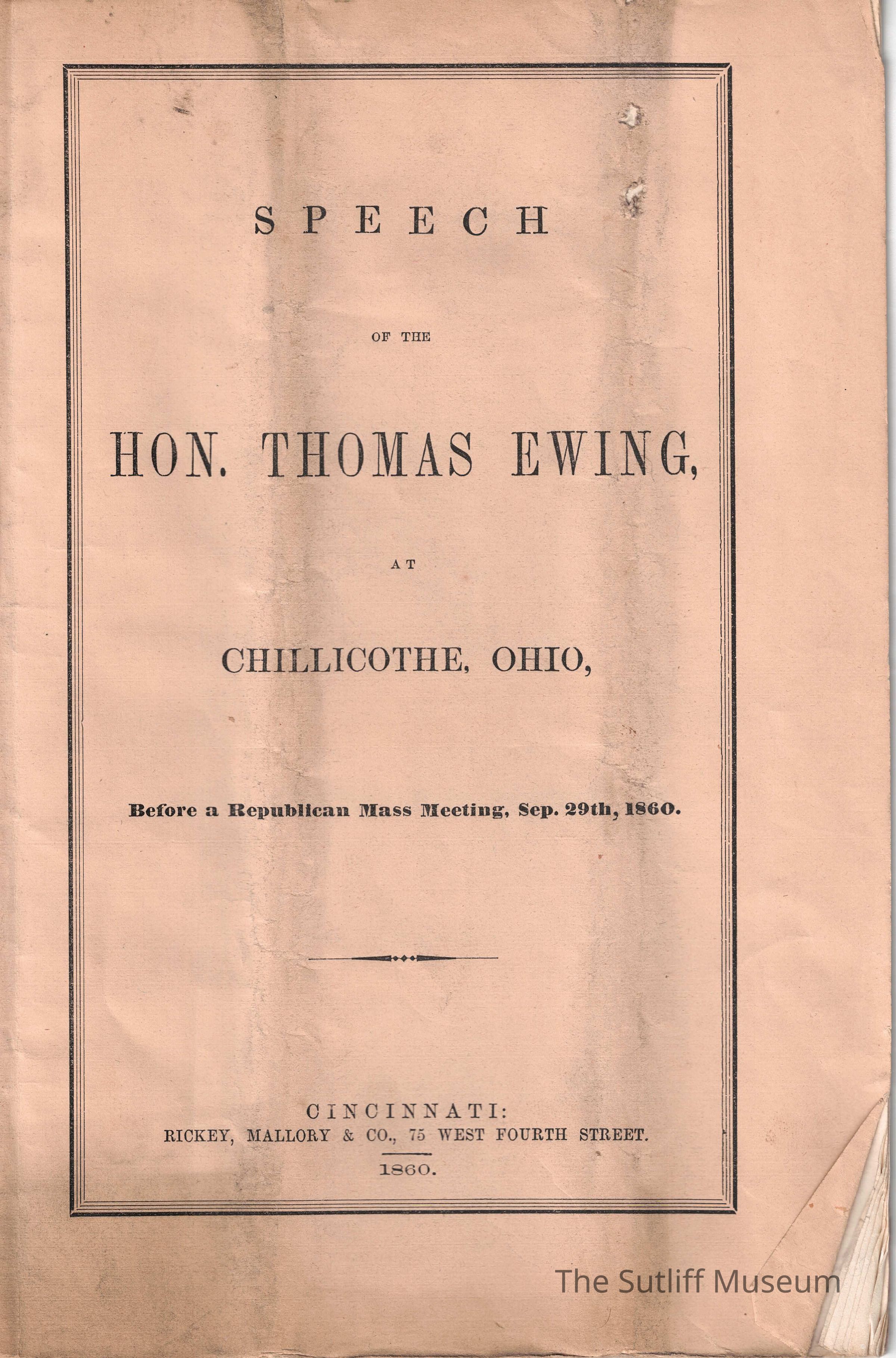 A speech given by Thomas Ewing regarding politics.Collection