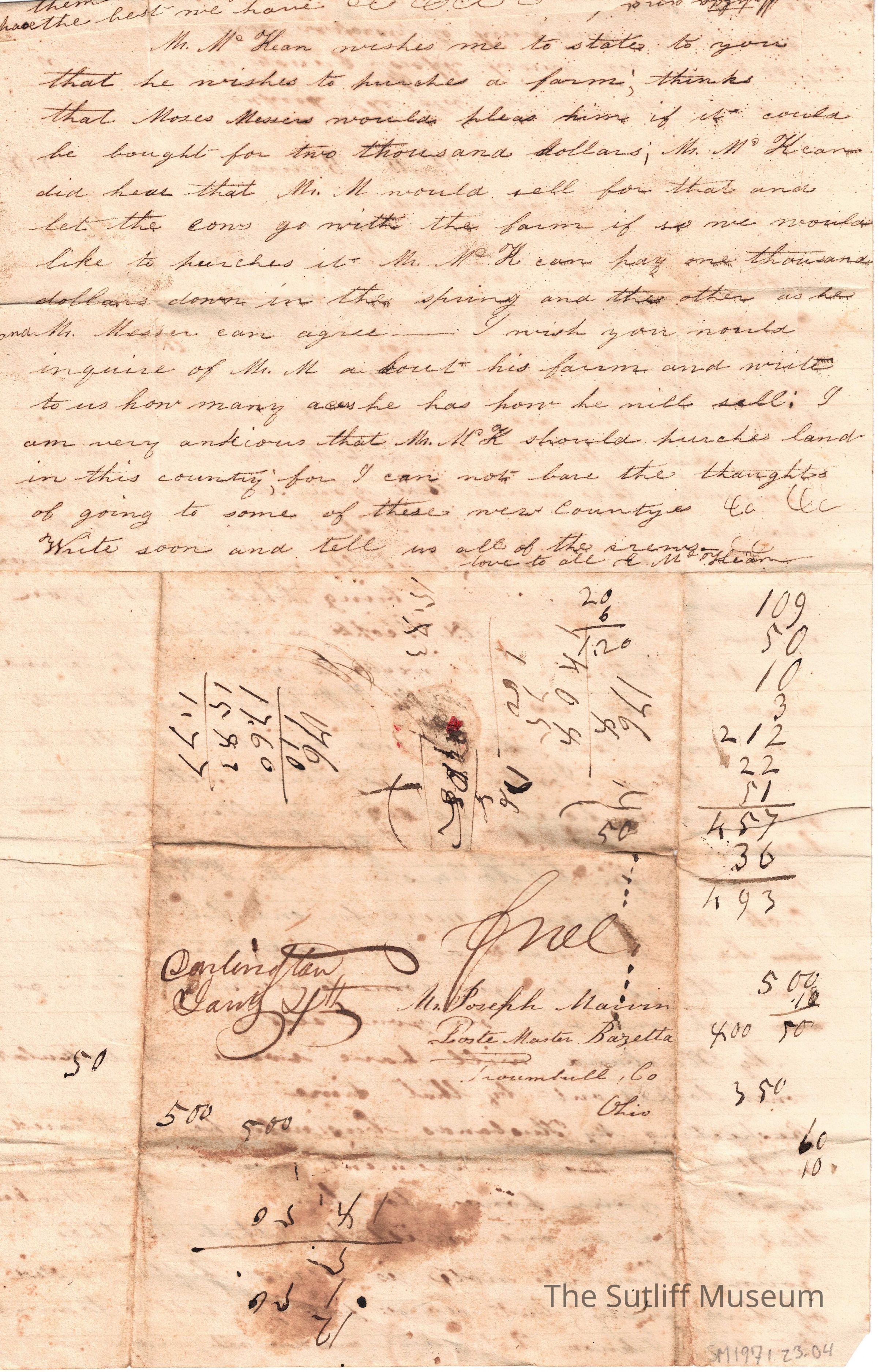 1830s, Travel, Family, Correspondence Between SutliffsDescription