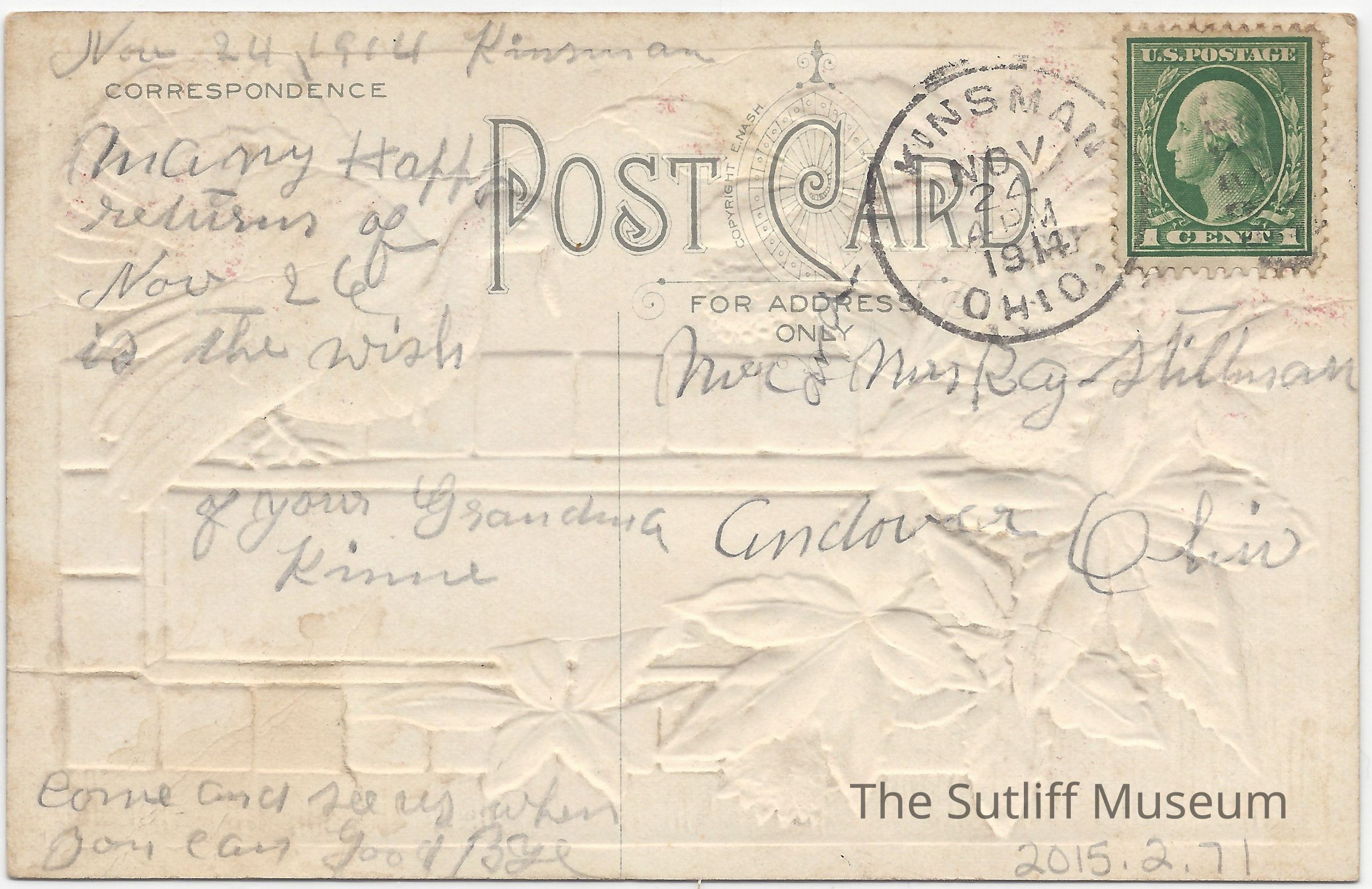 Art, Artifacts, Correspondence/Postcard, Cultural Activities, Domestic Life, Postal Services, People, Social & Personal Activity, Kinsman, Ohio