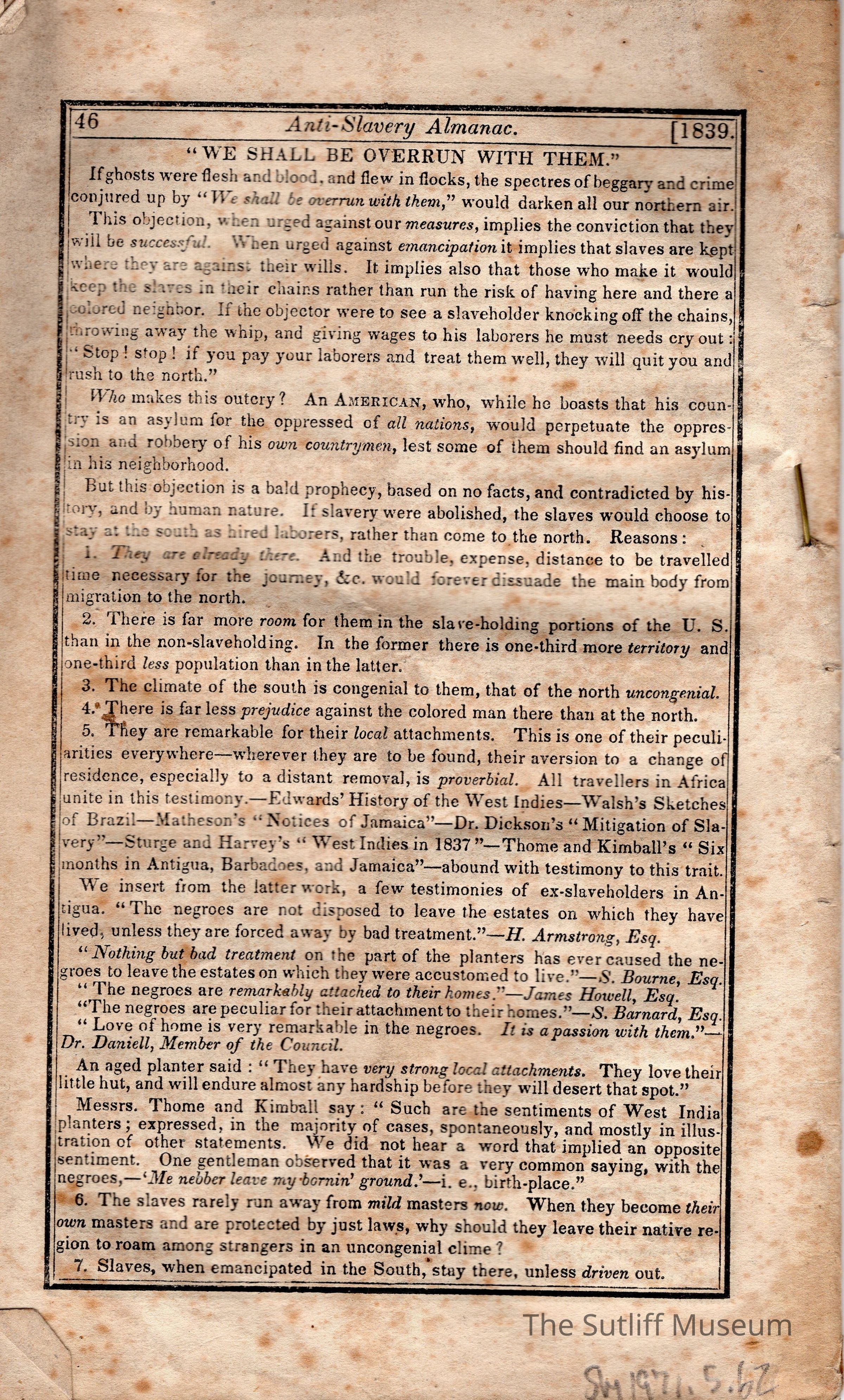 A booklet titled "The Anti-Slavery Almanac" for the year 1839.Collection