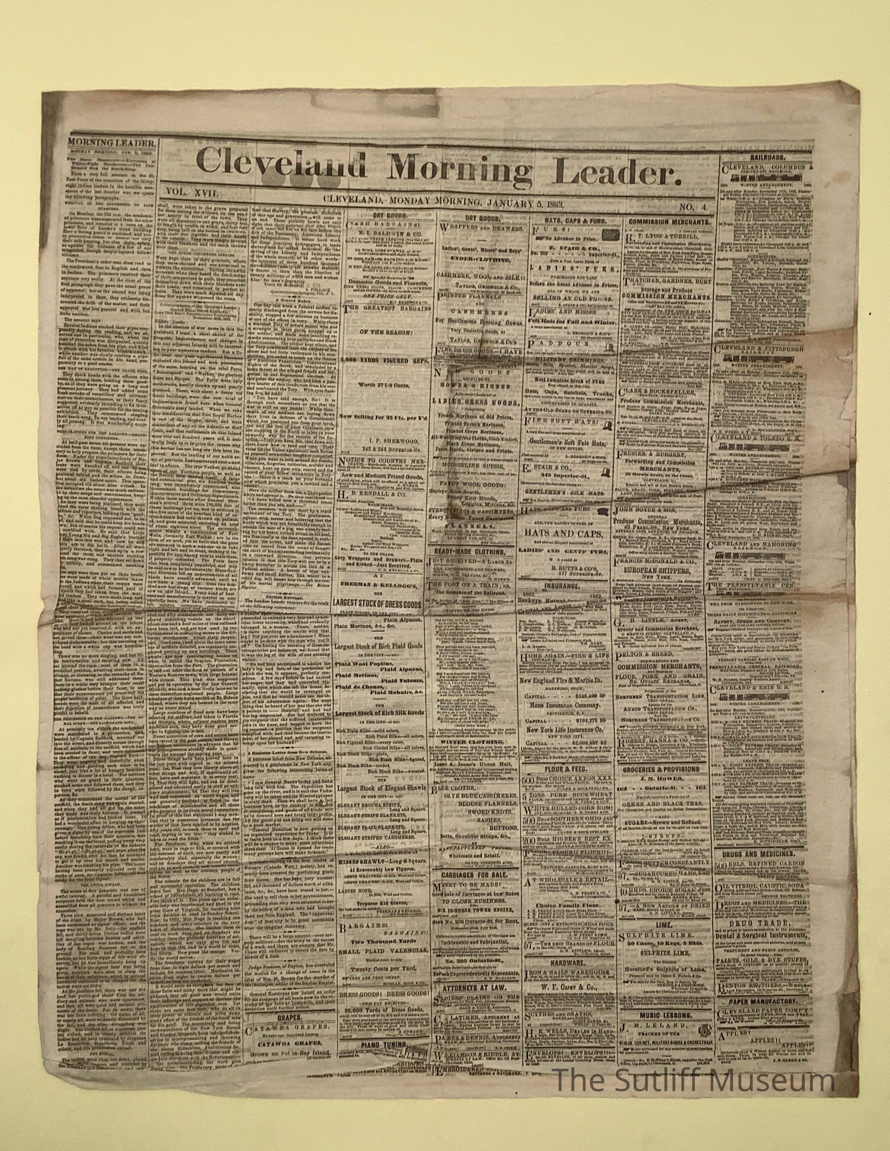 The Cleveland Morning Leader 01/05/1863Entry/Object ID