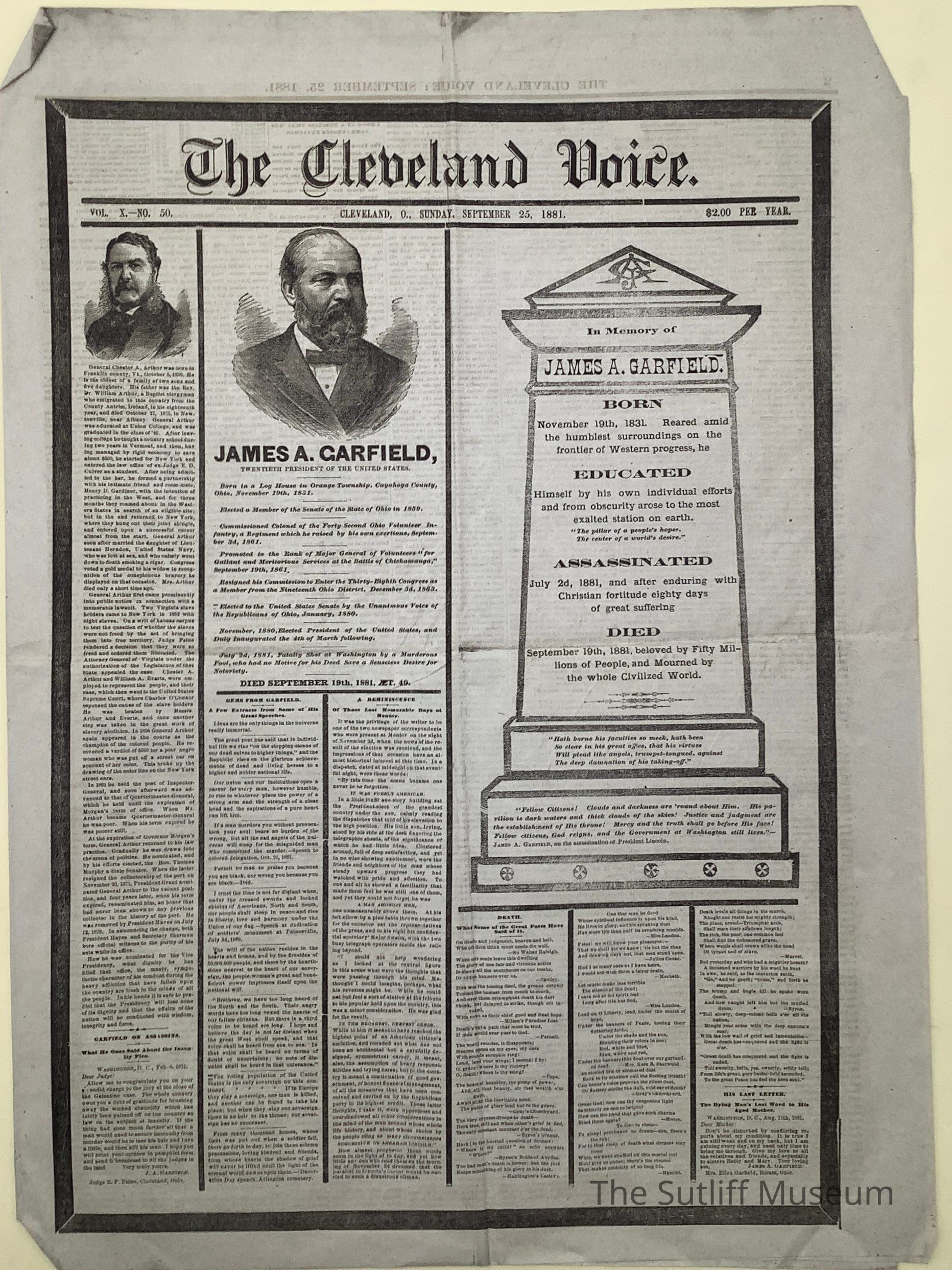 The Cleveland Voice newspaper, published September 25, 1881.Collection