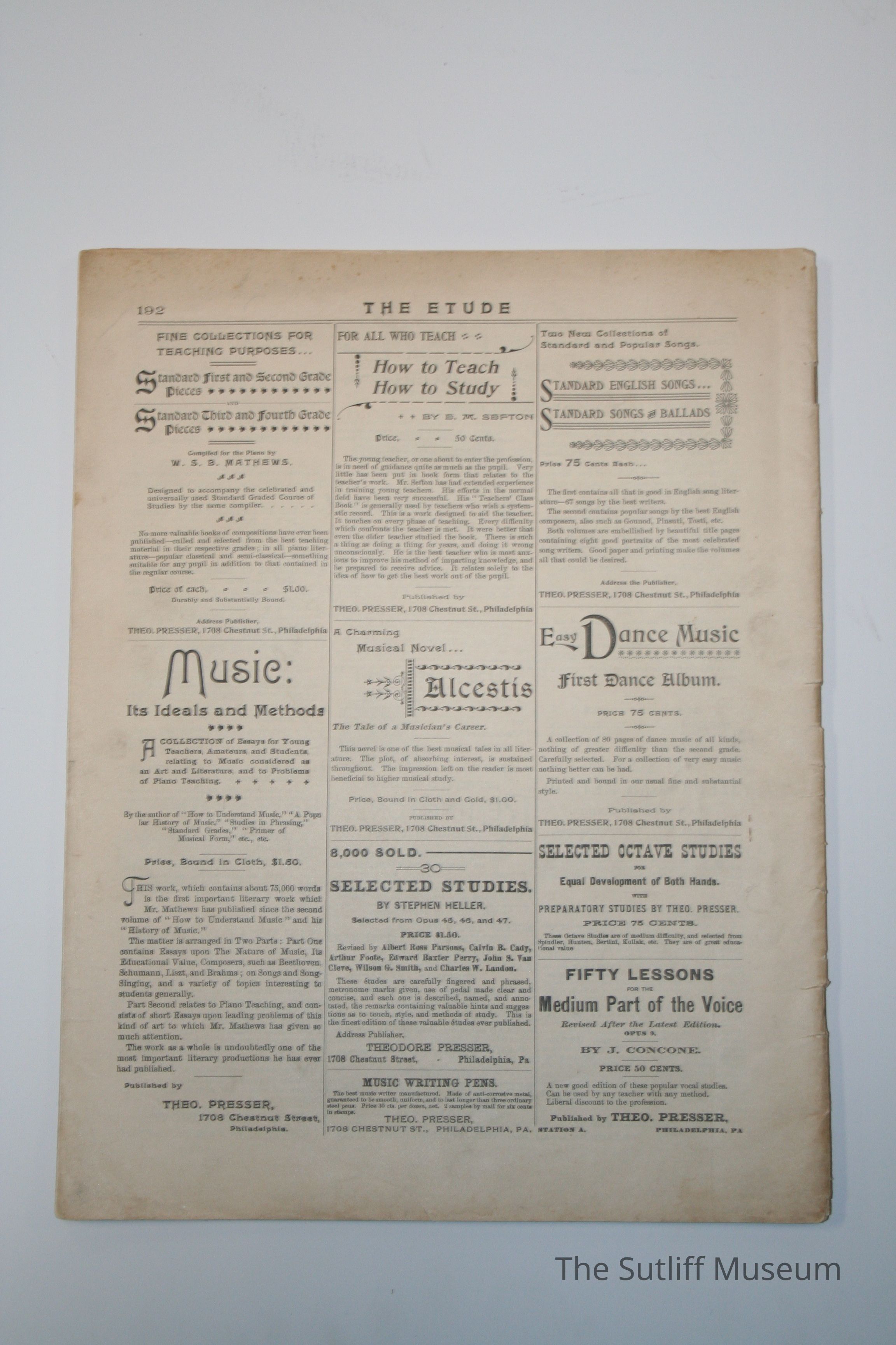 The Etude Magazine from June 1898 15.75 x 11 Paper with black ink