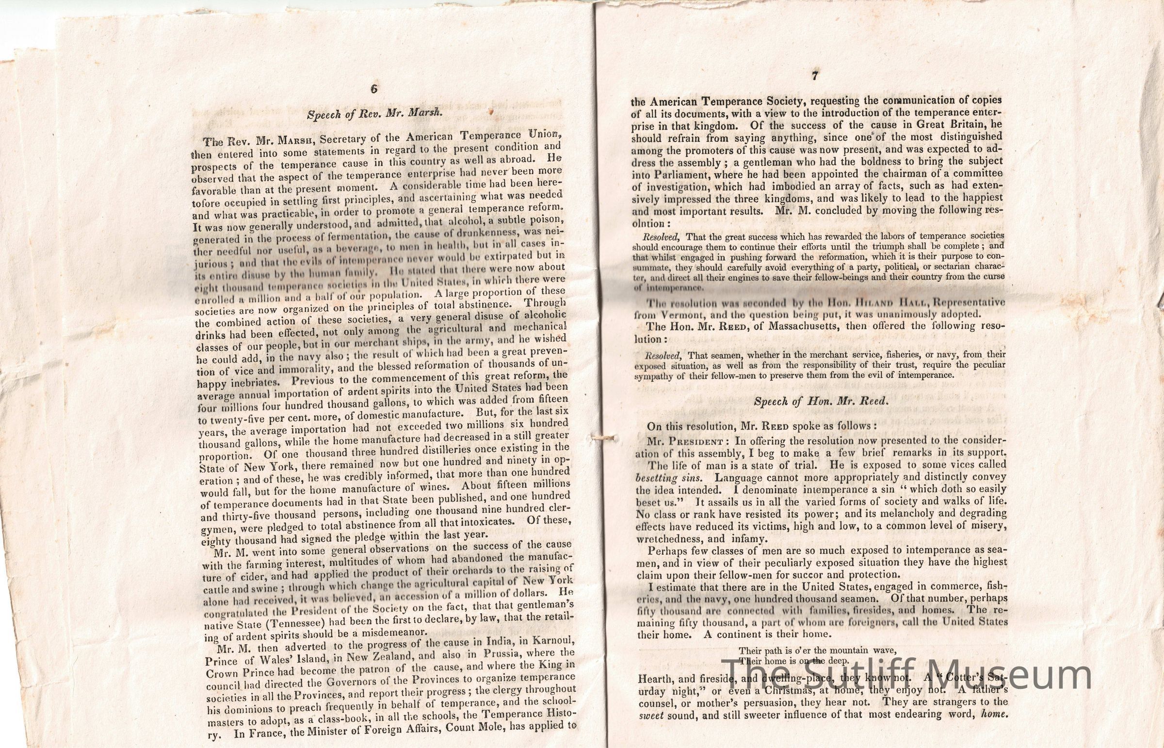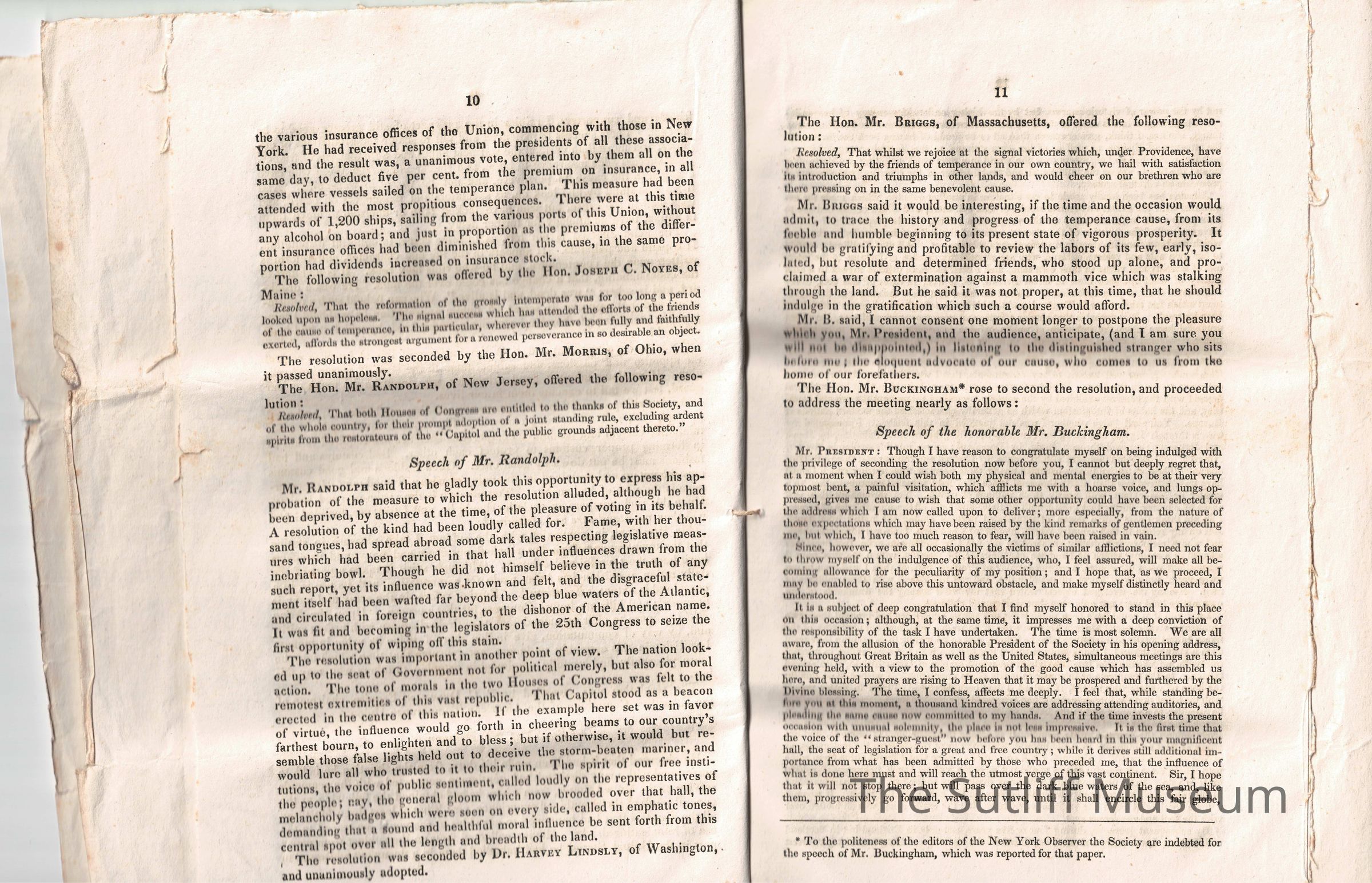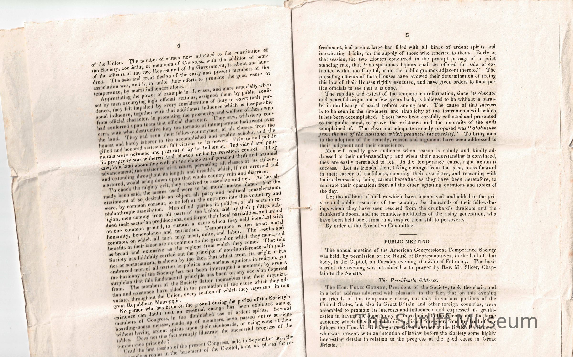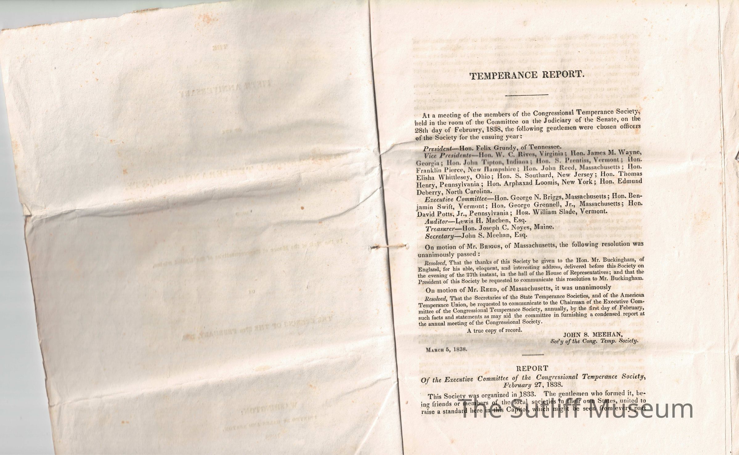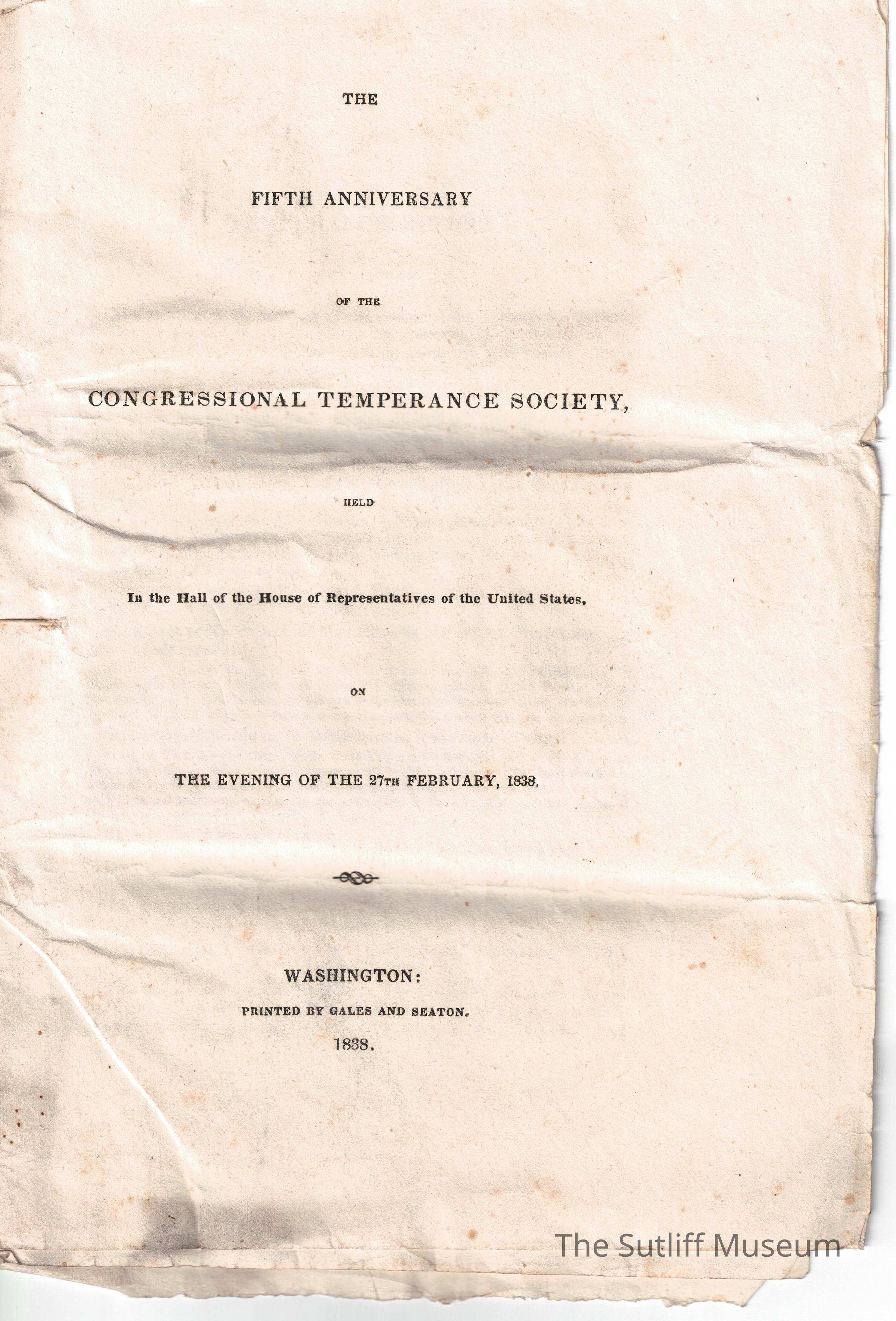 A booklet titled "The Fifth Anniversary of the Congressional Temperance Society, Held in the Hall of the House of Representatives of the United States, on the Evening of the 27th February, 1838"Relationships