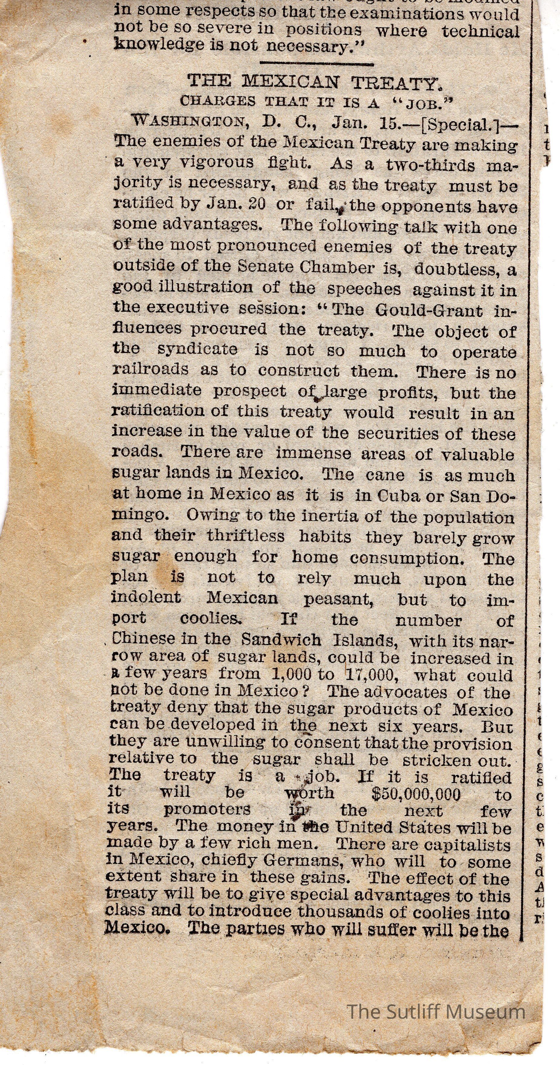 Newspaper clipping with an article about the Mexican TreatyCollection