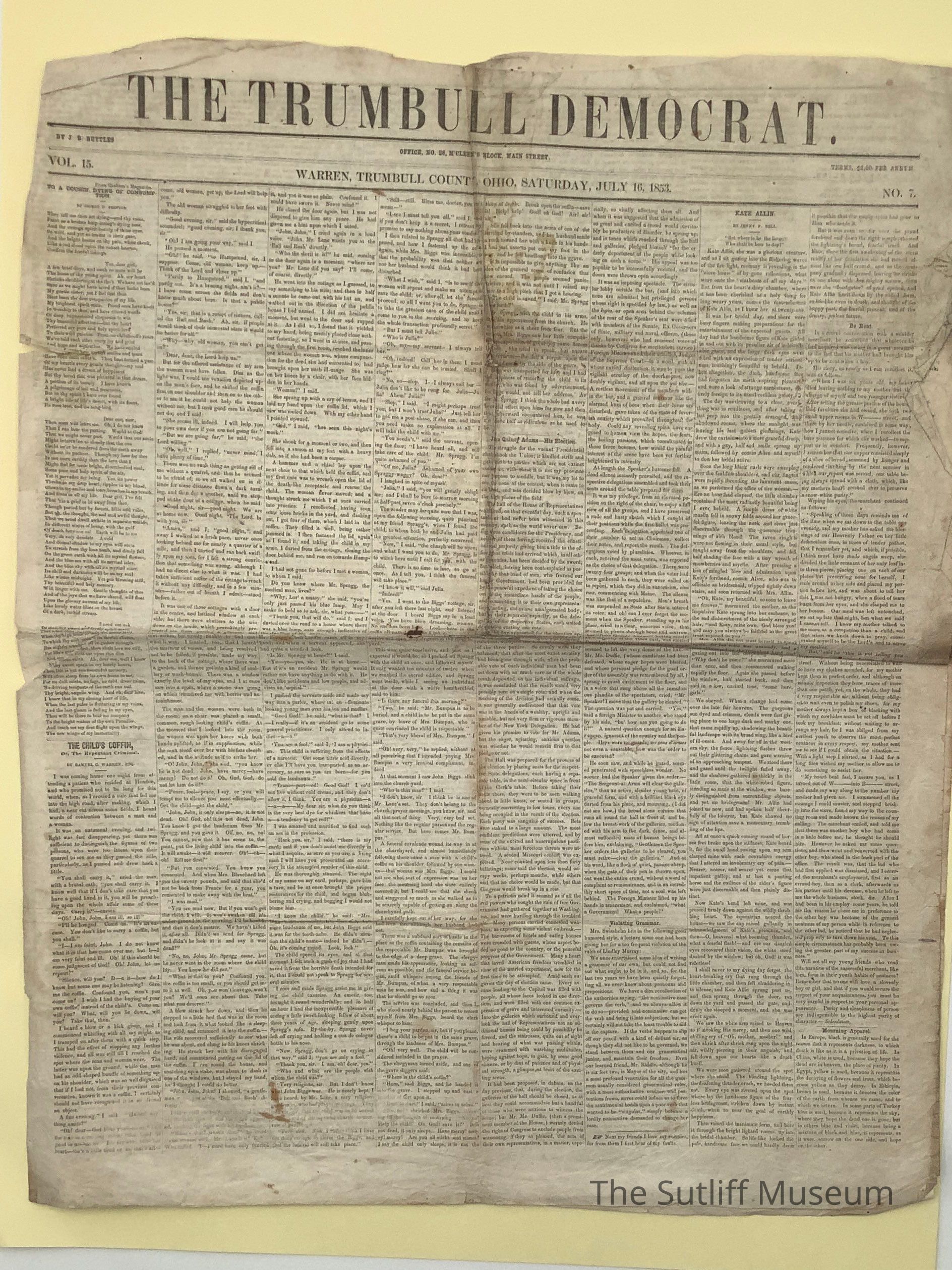 The Trumbull County Democrat newspaper published on July 16, 1853.Relationships
