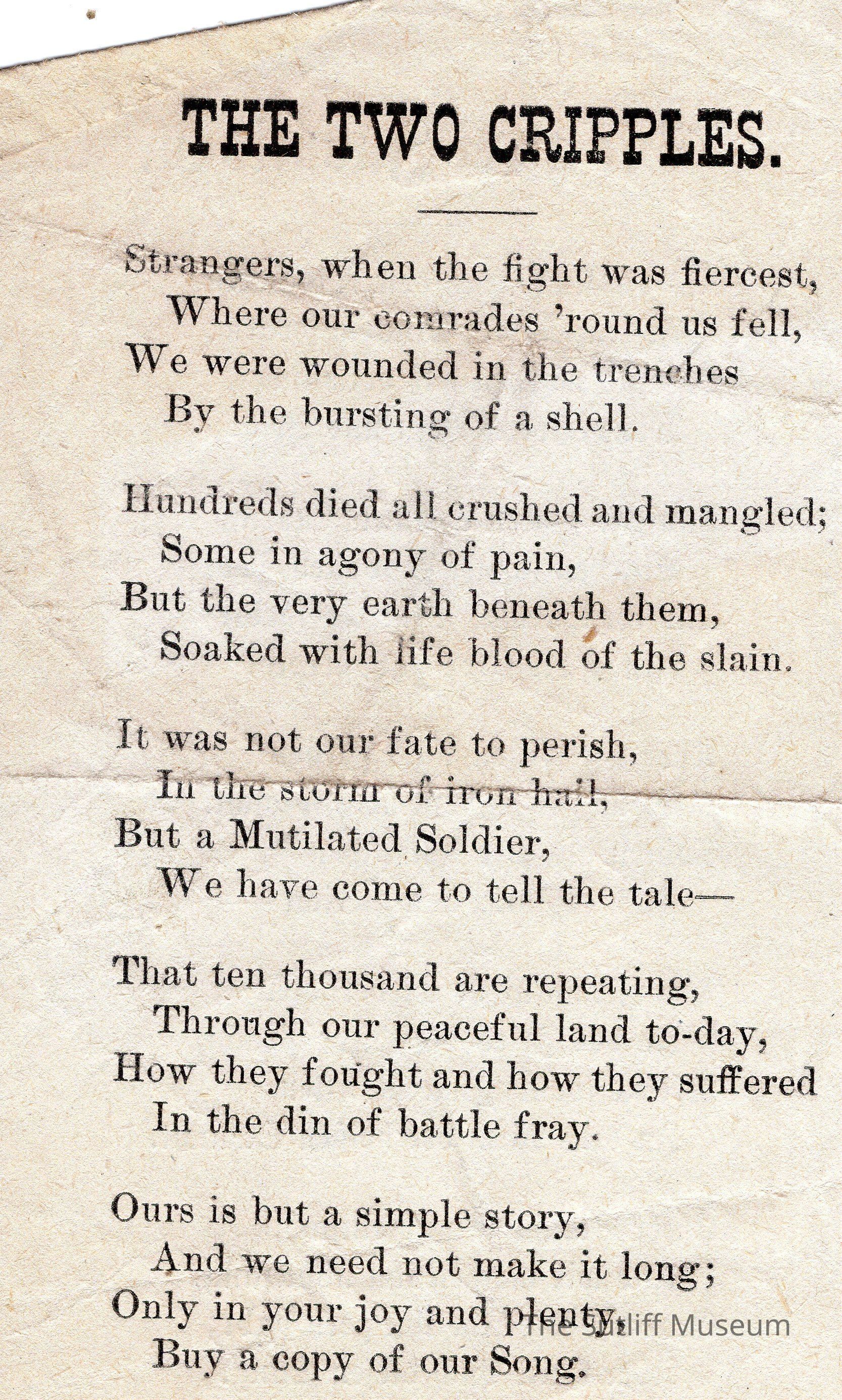 Newspaper clipping with a poem titled "The Two Cripples"Collection